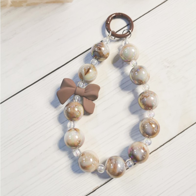 | nameOriginal | Electroplated beaded bow car keychain mobile phone pendant cute candy color paint ring pearl accessories bag decoration |
