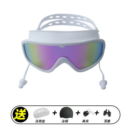 Electroplated large frame swimming goggles waterproof anti-fog HD children adult diving glasses swimming cap suit UV protection