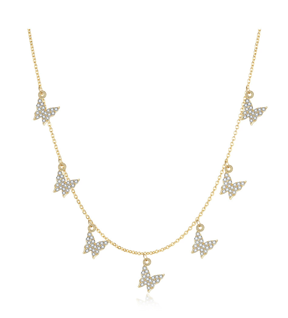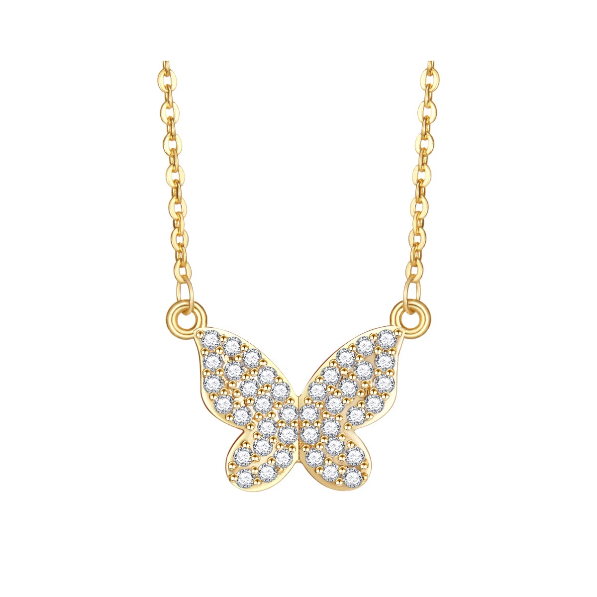 | nameOriginal | Electroplated white gold butterfly necklace with sparkling diamonds |