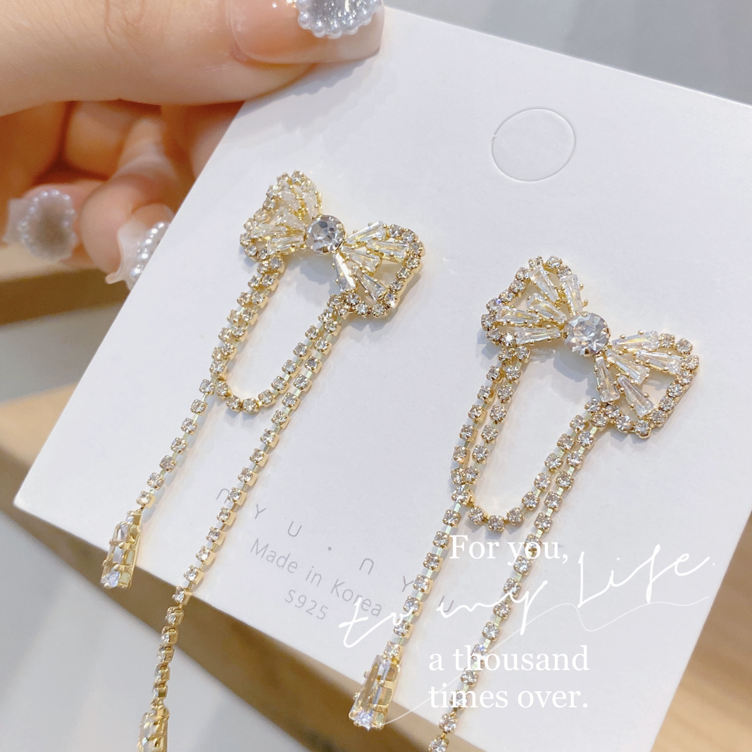| nameOriginal | Electroplated zircon tassel earrings autumn and winter versatile Jurchen gold |
