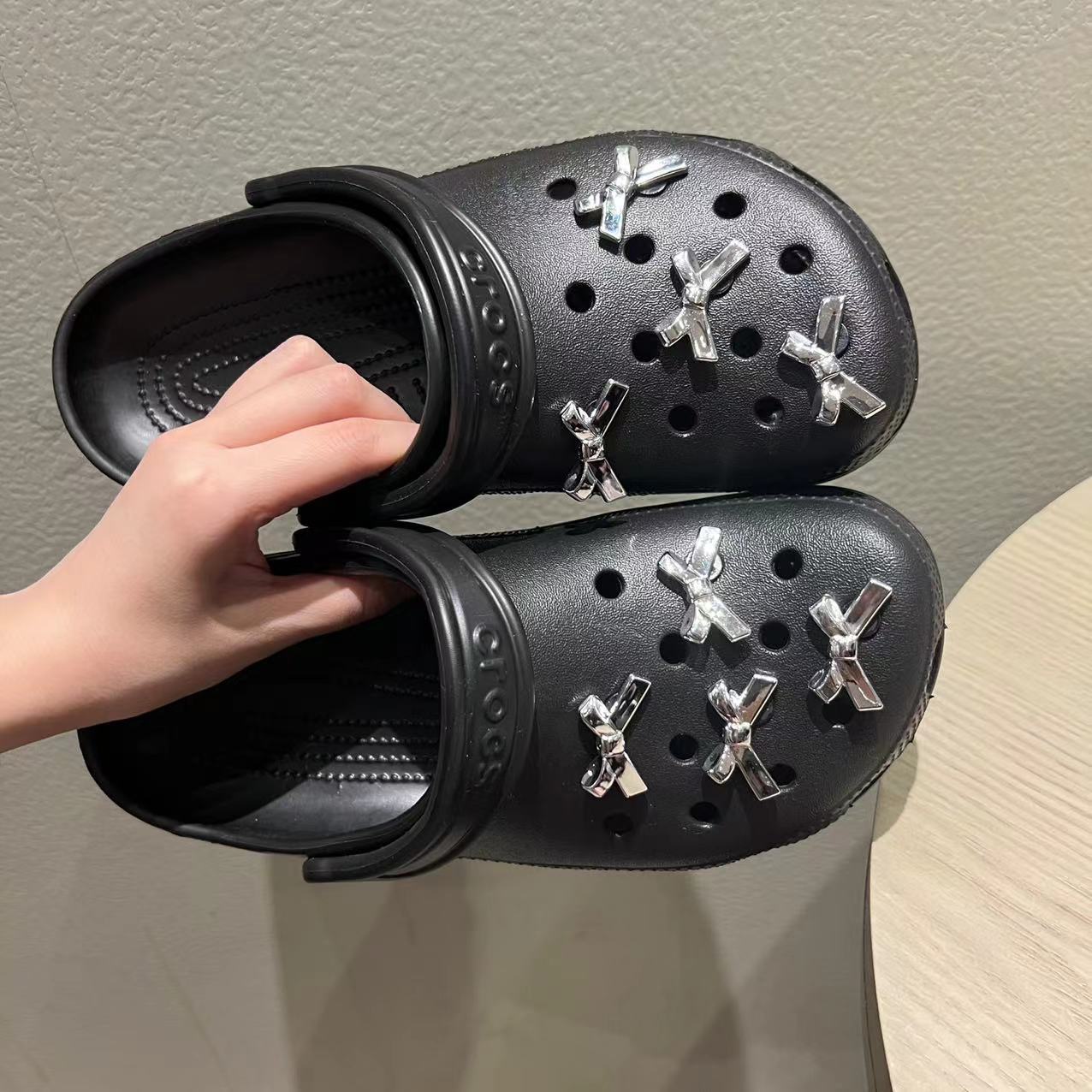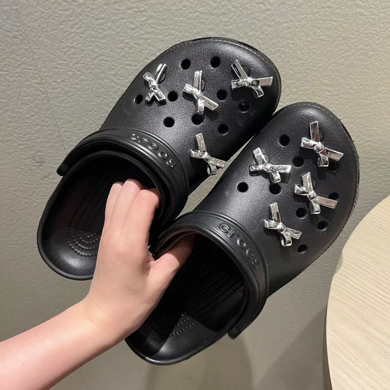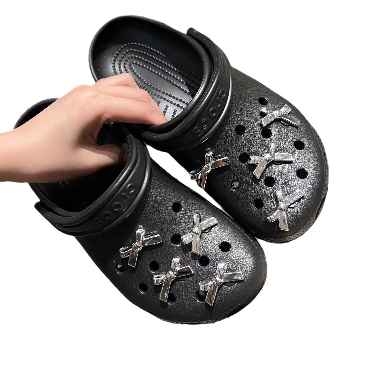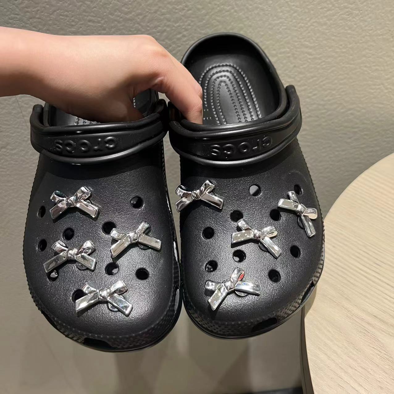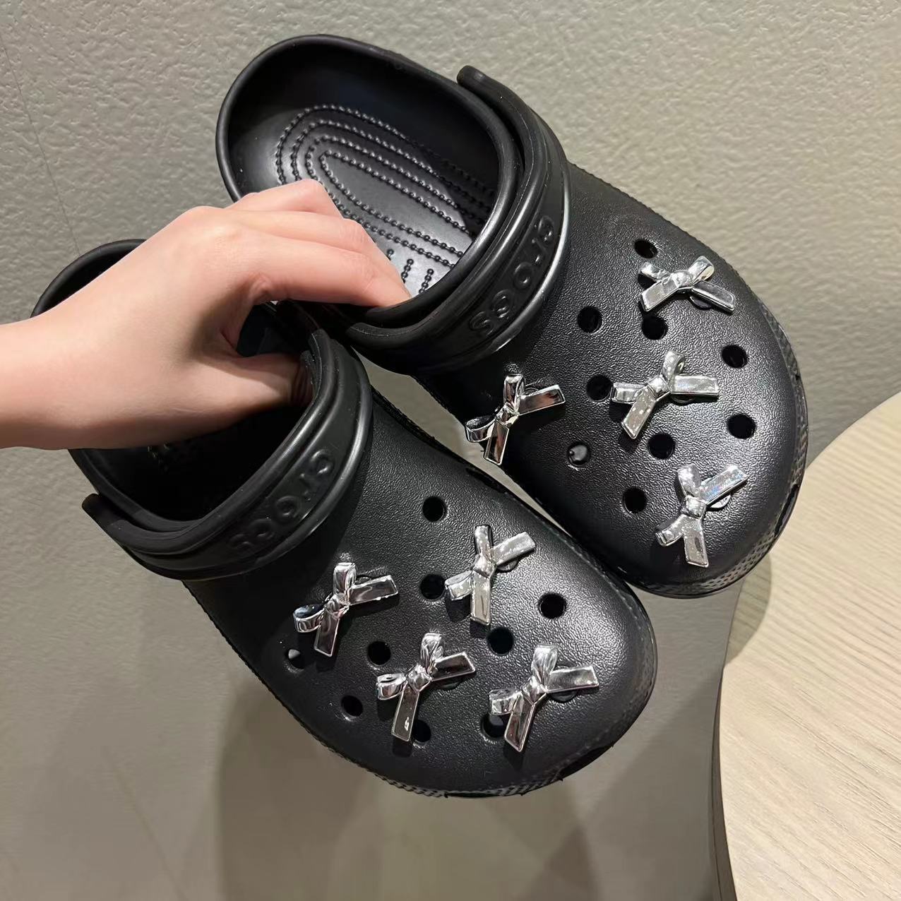 Electroplating silver bow hole shoes shoe buckle three-dimensional diy detachable sweet cool hot girl shoe flower decoration wholesale