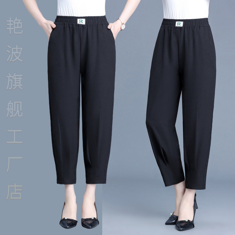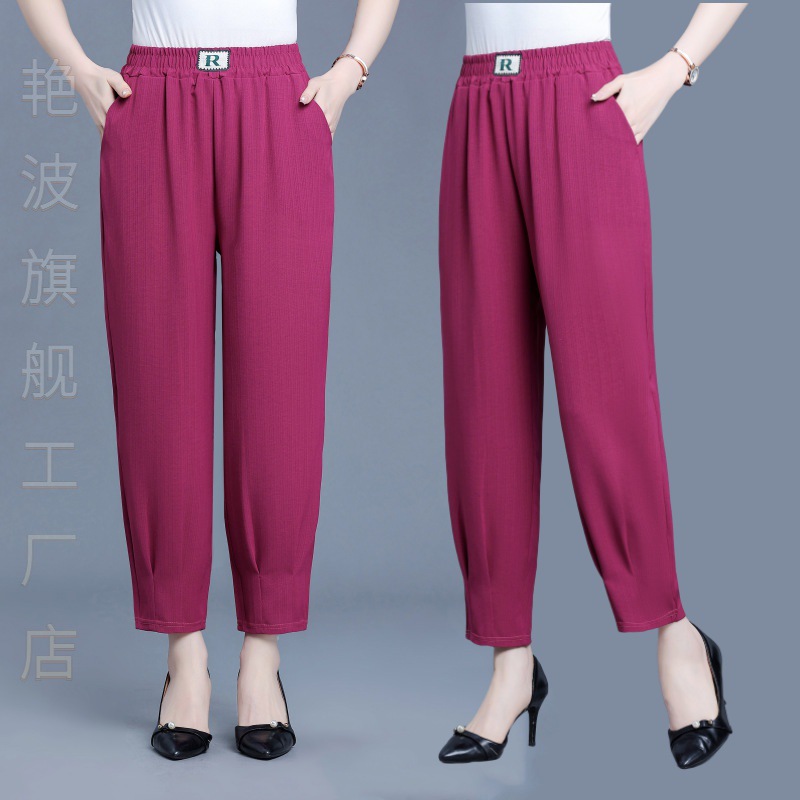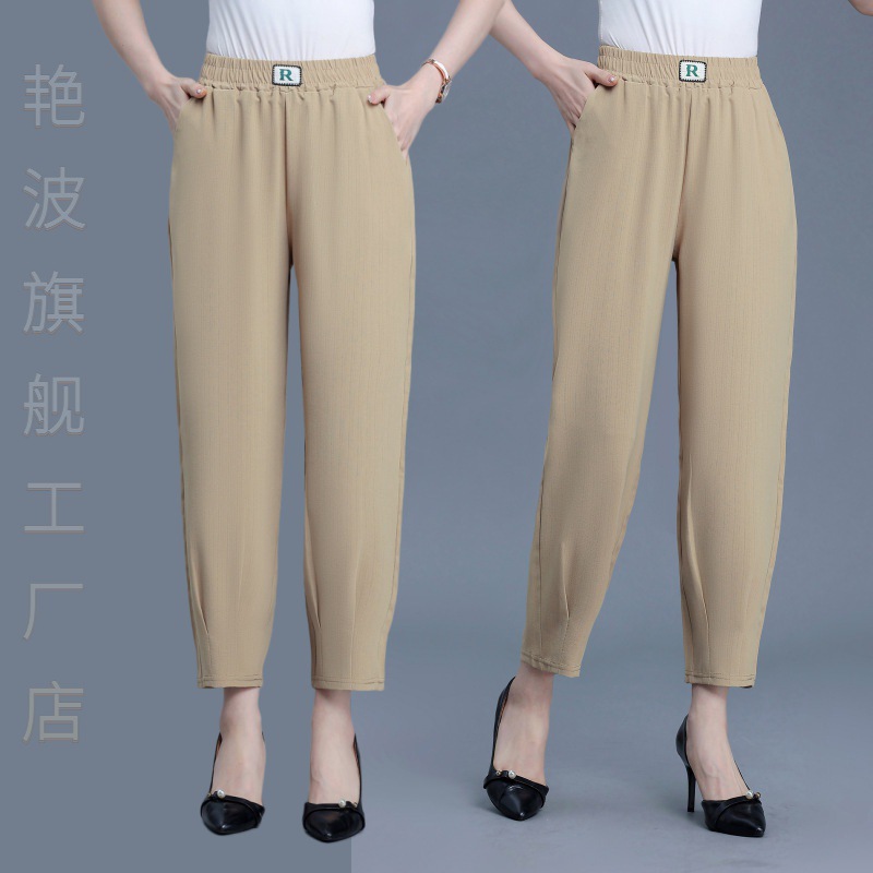 | nameOriginal | Elegant 2024 Summer New Ice Silk Mother Pants Women's Elasto plus size Straight Nine-point Haren Pants with Old Taste |