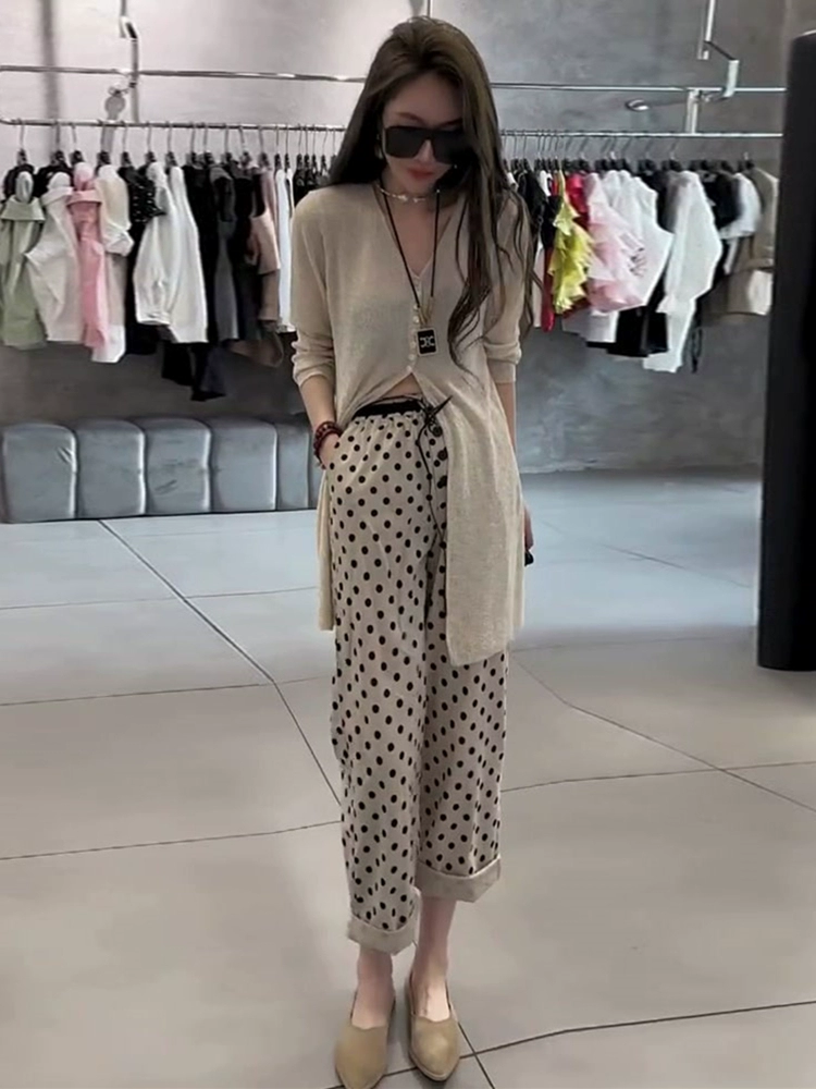 | nameOriginal | Elegant and versatile ice silk polka dot nine-point pants knitted cardigan |