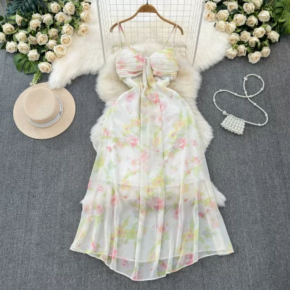 Elegant Beach Skirt Sanya Photo Fairy Floral Suspender