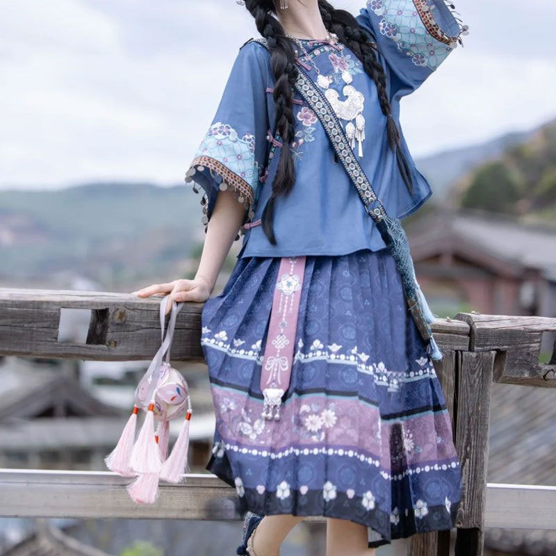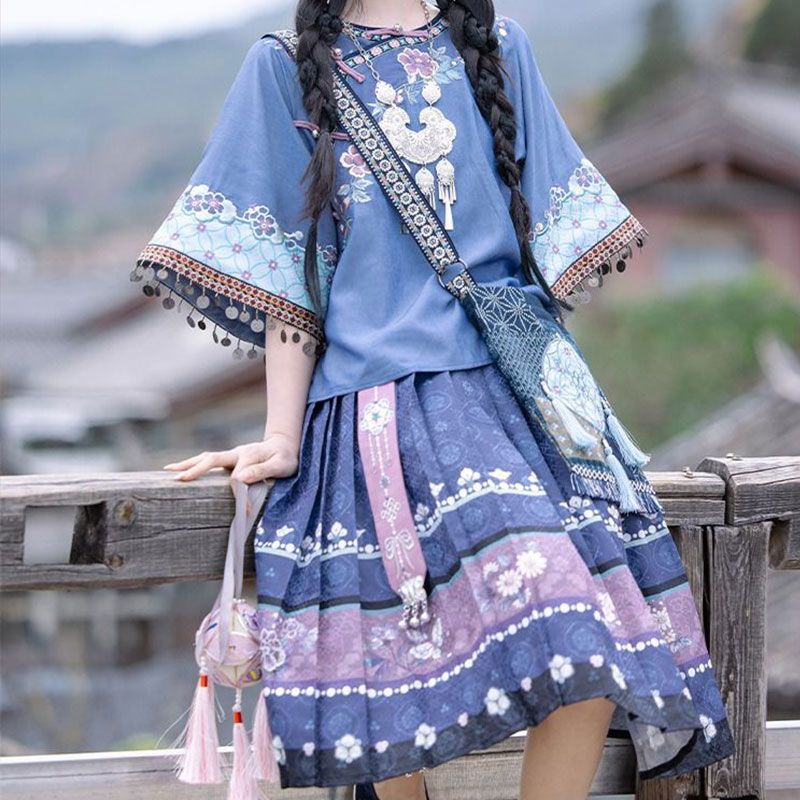 | nameOriginal | Elegant Chinese Style National Style suit Summer New Chinese Element Improved Ethnic Style Top Skirt Two-piece Set |