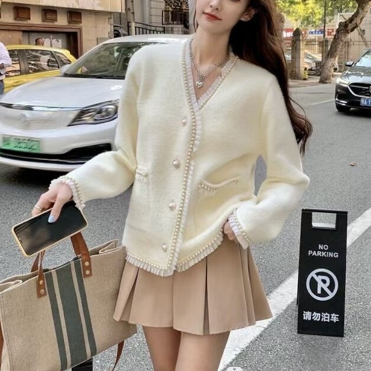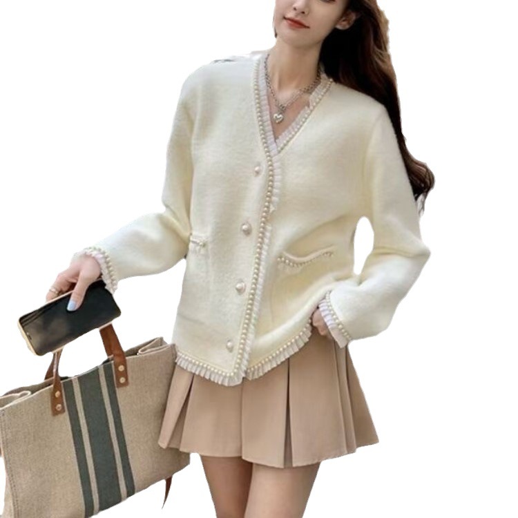 | nameOriginal | Elegant Commuter Imitation Mink Velvet Jacket 2023 Autumn and Winter New Loose V-neck Chanel Style Knitted Cardigan Korean Coat |