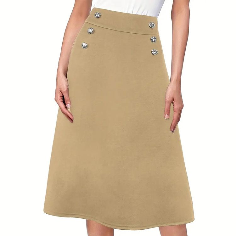| nameOriginal | Elegant commuter skirt 2024 New button decorative solid color A- line skirt one-step skirt fashion all-matching skirt for women |