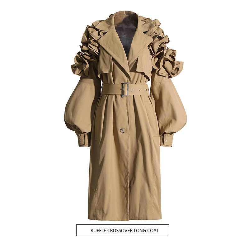 | nameOriginal | Elegant Commuter Style Mid-length Coat 2024 Lapel Long-sleeved Ruffled Stitching Slim-fit Slimming Over-the-knee Coat for Women |