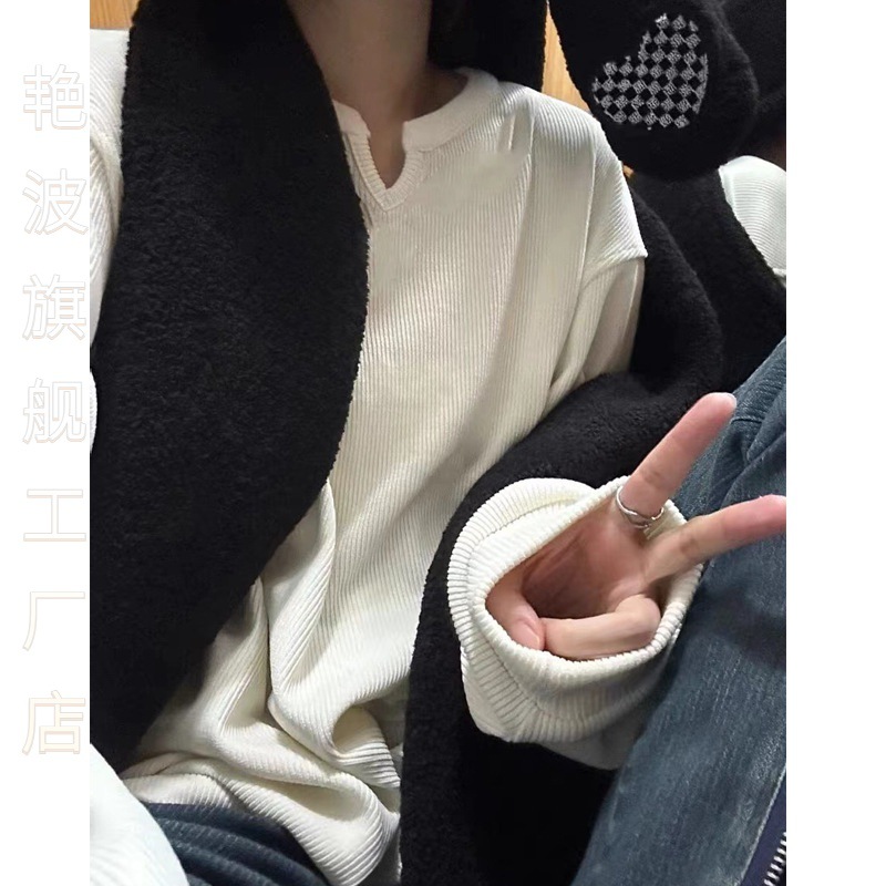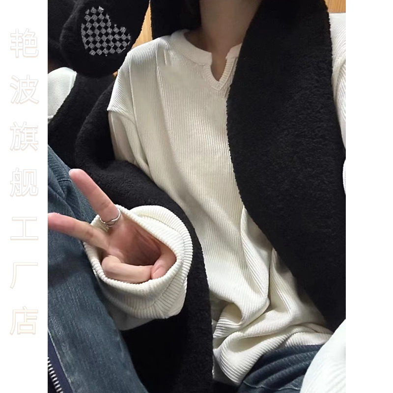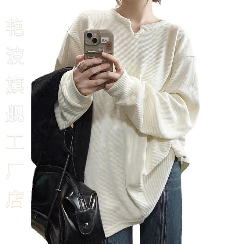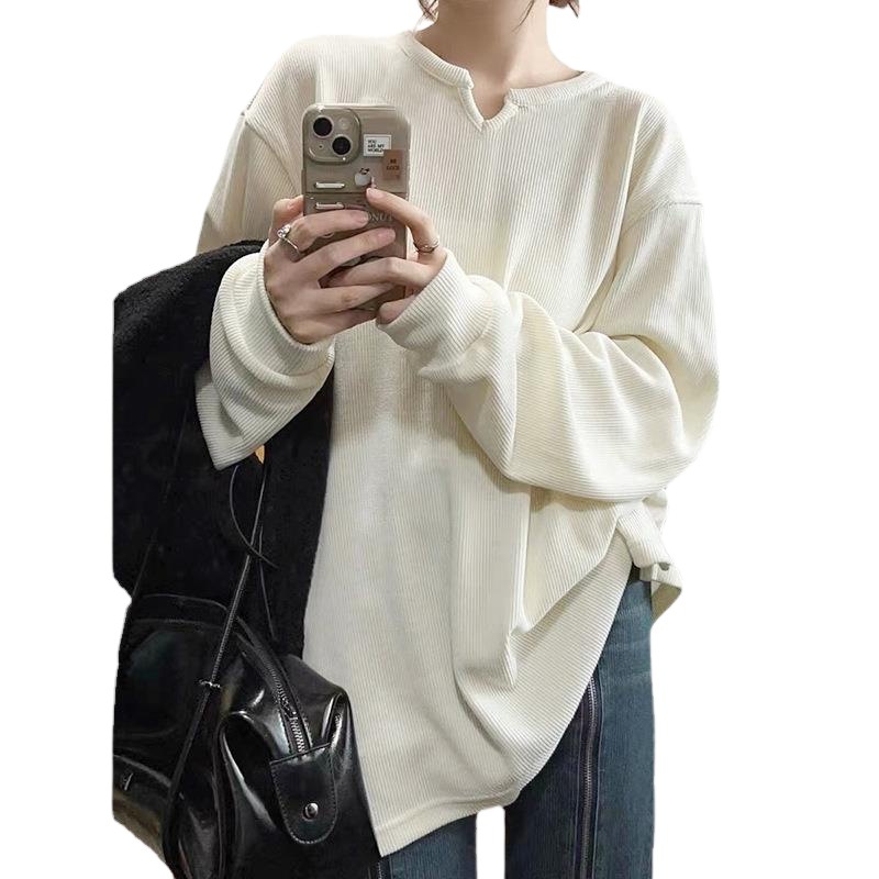 | nameOriginal | Elegant corduroy loose long-sleeved T-shirt women's spring 2024 new white bottoming shirt with tasteful mid-length inside |