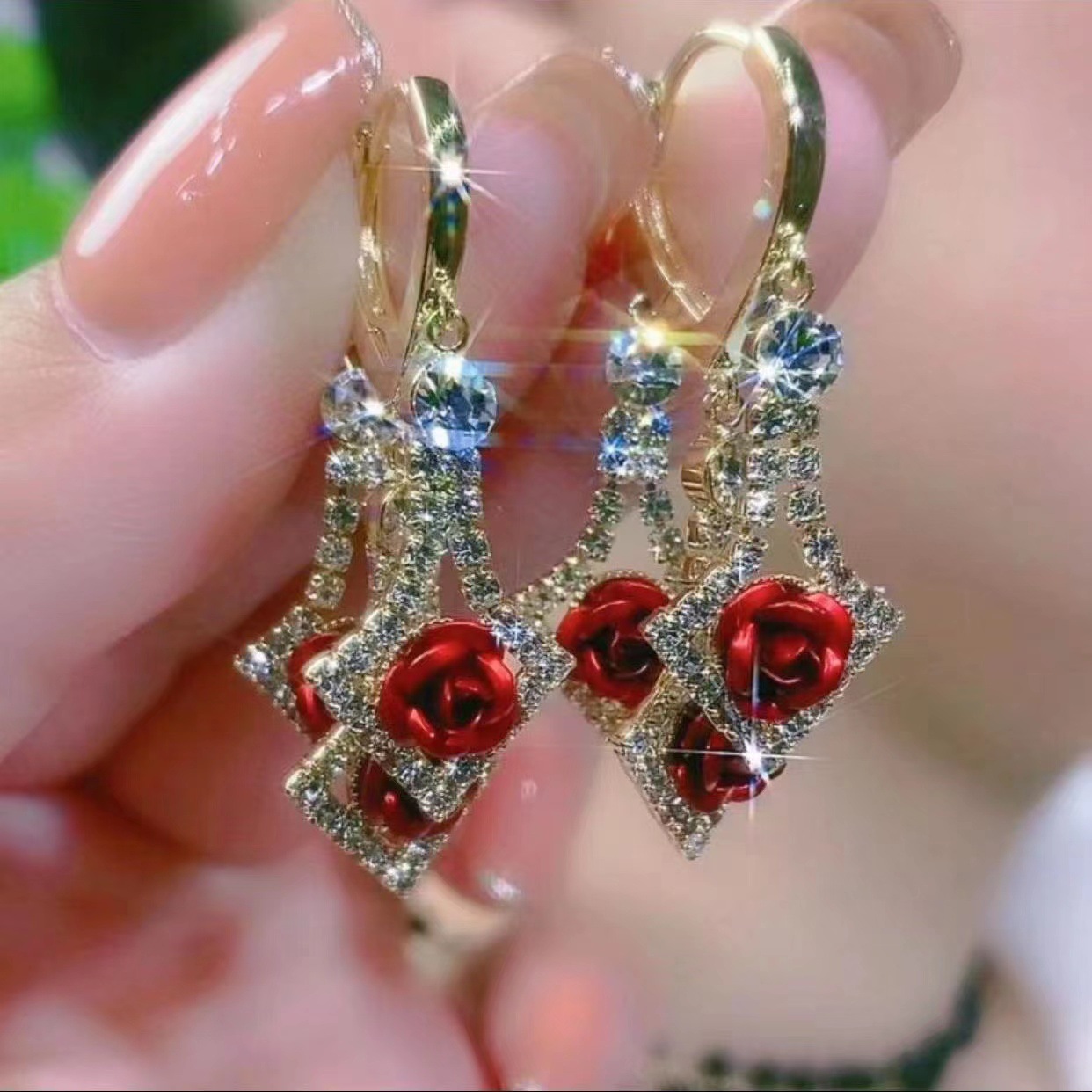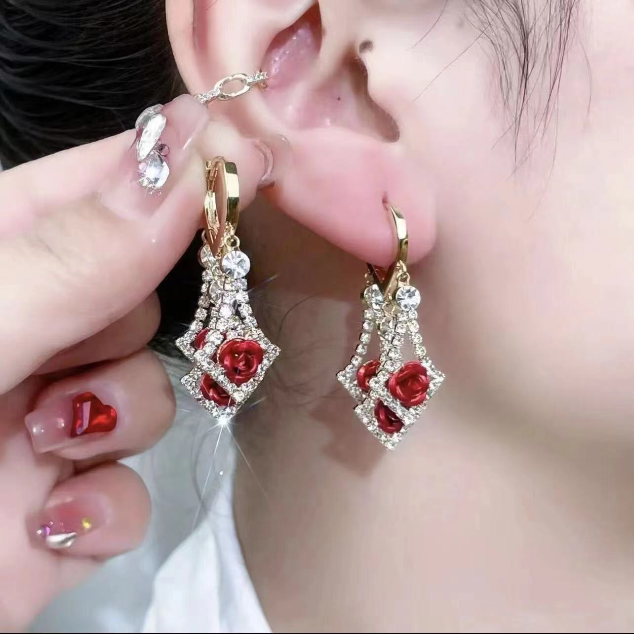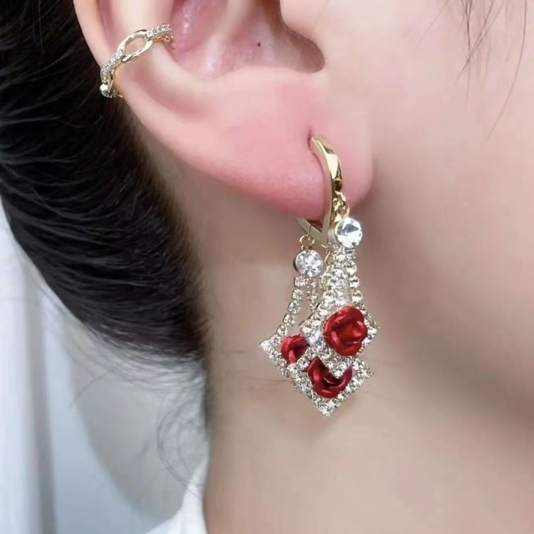 | nameOriginal | Elegant diamond rhinestone earrings 2023 new trendy lovely ear buckle earrings light luxury high-grade rose earrings |
