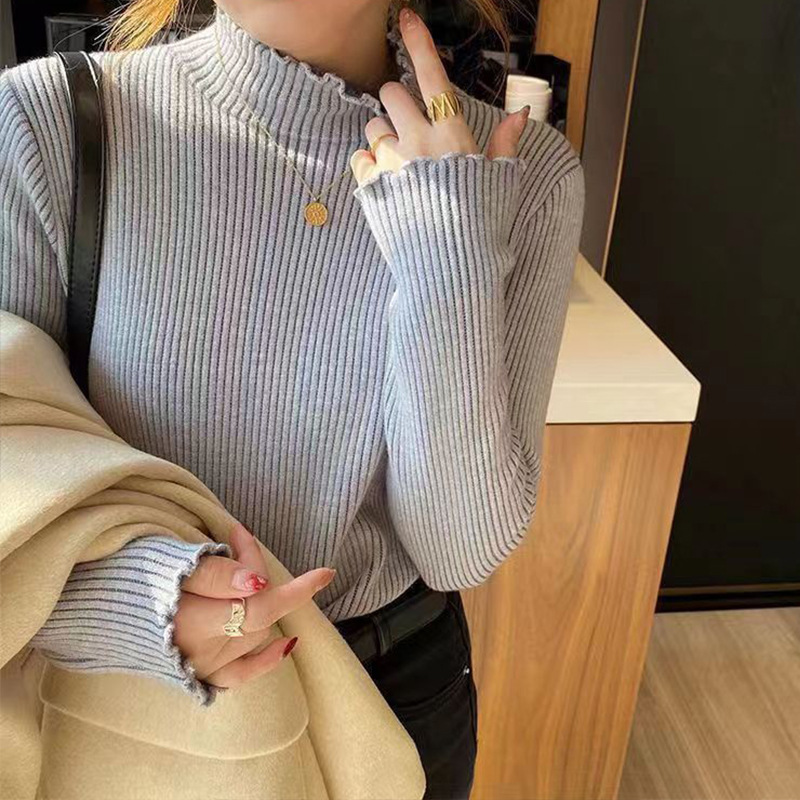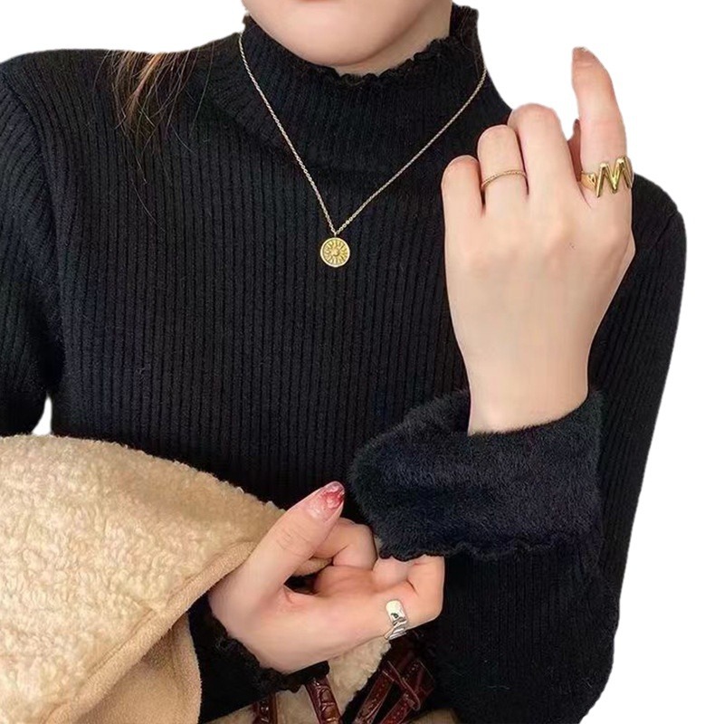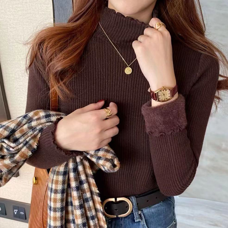 | nameOriginal | Elegant elegant style one-piece velvet fleece-lined thickened half turtleneck wooden ear sweater women's winter knitted bottoming shirt inner wear |