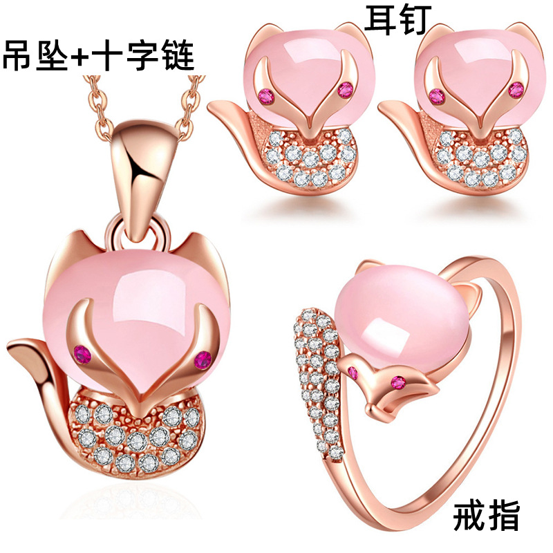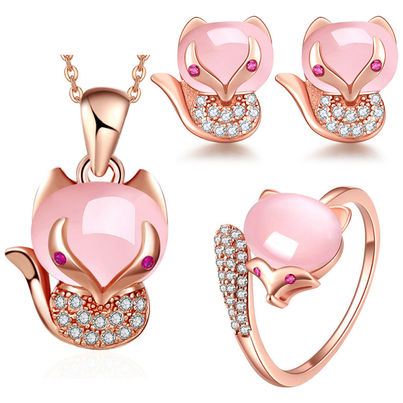 | nameOriginal | Elegant Exquisite Pink Diamond Fox Earrings Ring Pendant Necklace Jewelry Set Pink Diamond Pendant Ring Fox Jewelry |