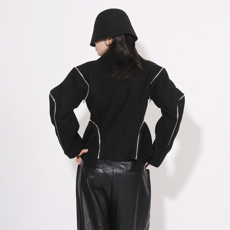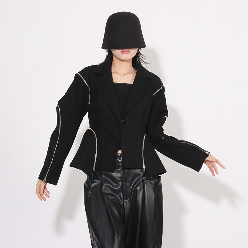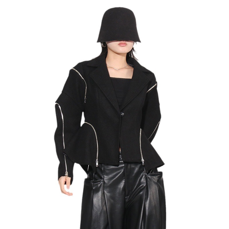 | nameOriginal | Elegant Fashion British Style 2024 Spring New Stitching Suit Collar Zipper Irregular Niche Suit Jacket for Women |