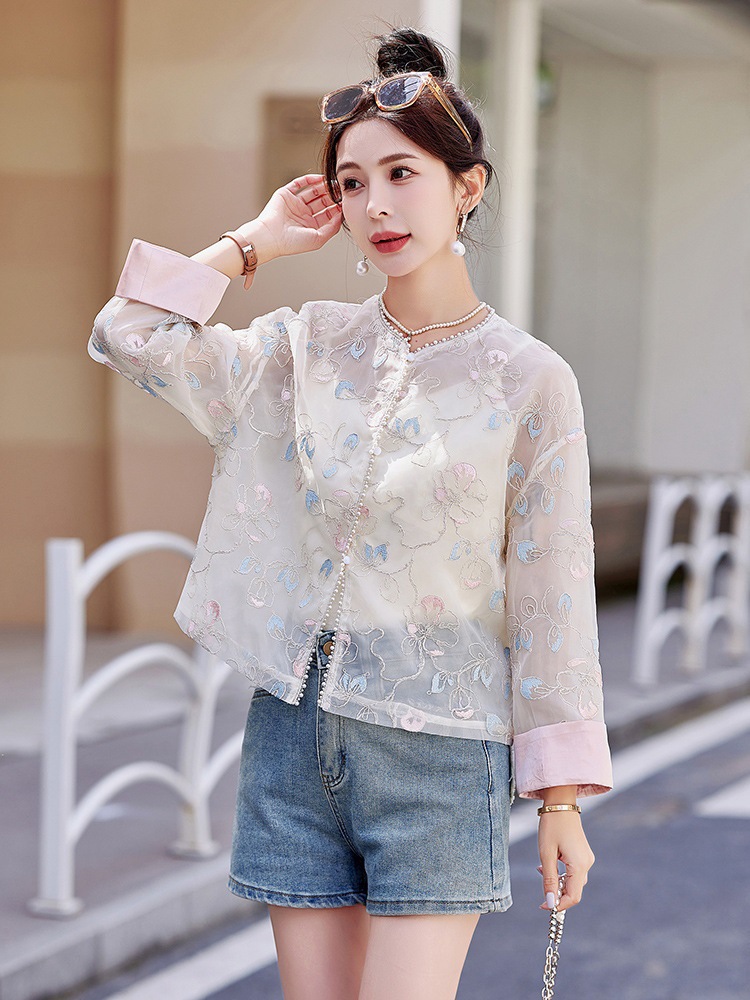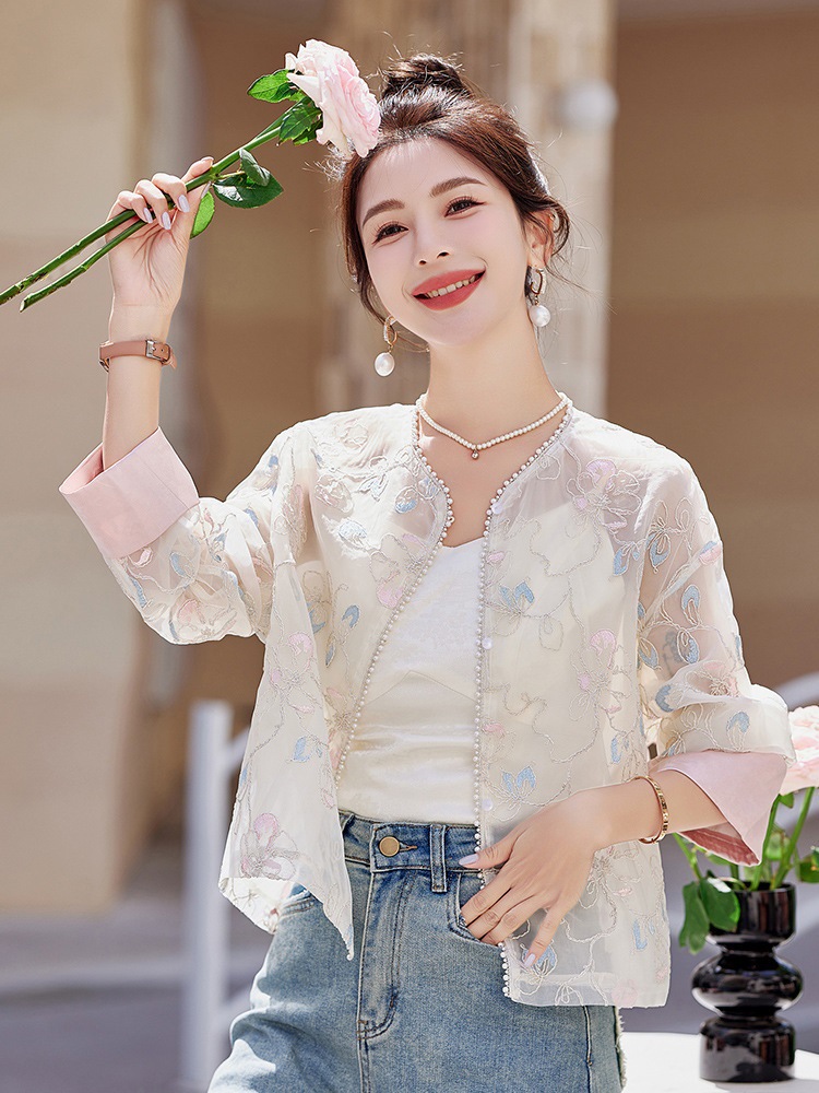 | nameOriginal | Elegant Fashion Light Luxury Elegant Retro Embroidered Bead Design Cool Breathable Thin Jacket 2024 Summer New All-match |