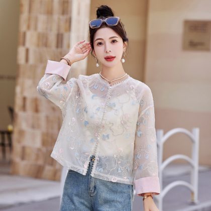 | nameOriginal | Elegant Fashion Light Luxury Elegant Retro Embroidered Bead Design Cool Breathable Thin Jacket 2024 Summer New All-match |