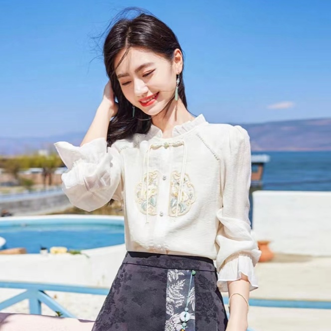 | nameOriginal | Elegant Fashion Retro Modern Chinese Style Long-sleeved Shirt Women's 2024 Spring New Arrival Ear-trimmed All-match Shirt |