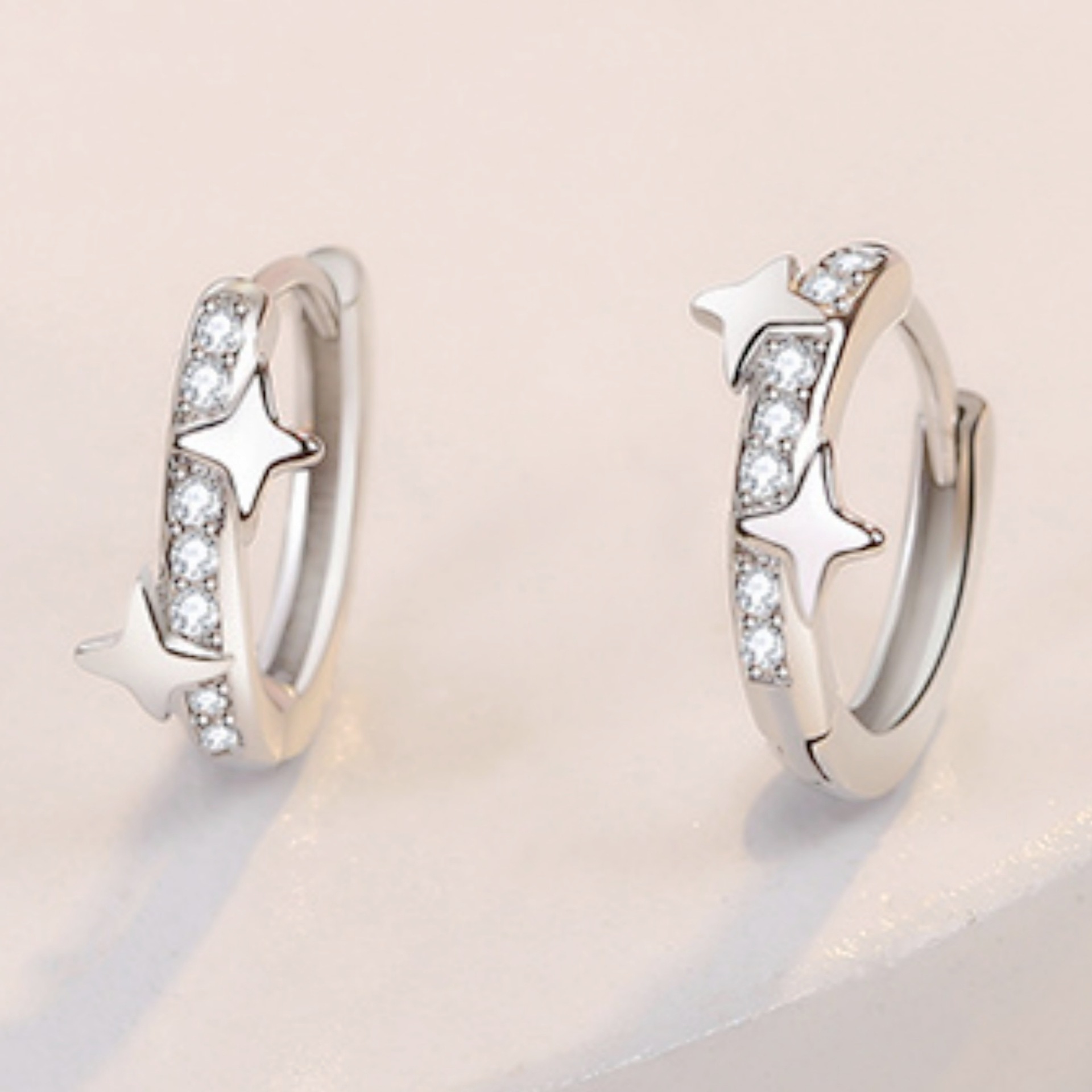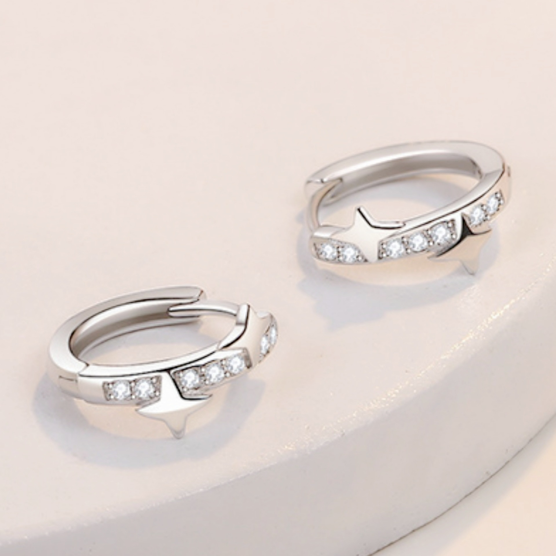 Elegant four-corner Star ear buckle trendy meteor ear buckle elegant women’s Korean-style diamond-embedded earrings design star earrings