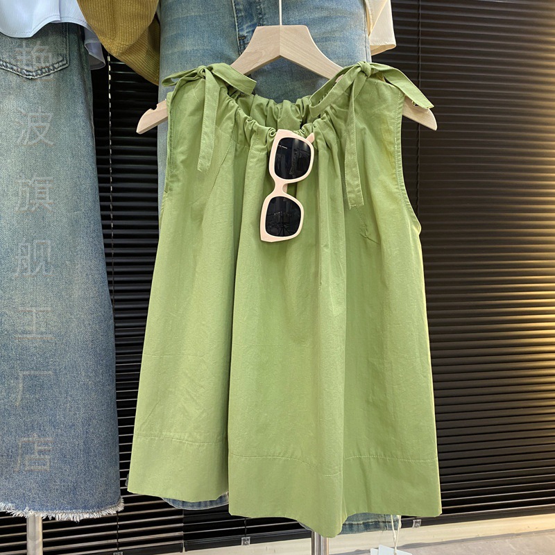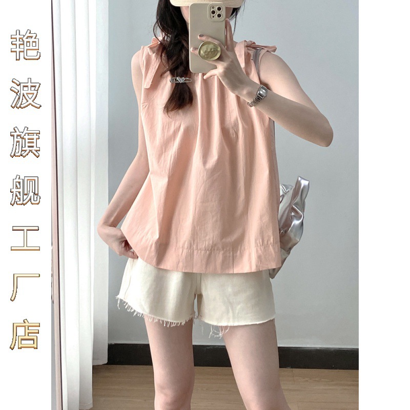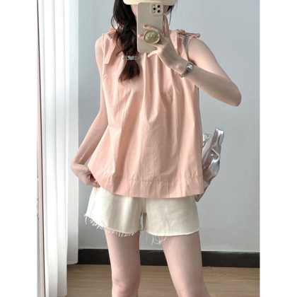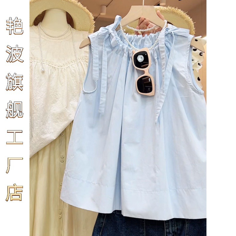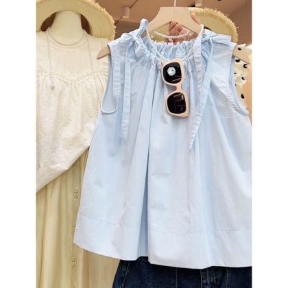 Elegant French Blue Sleeveless Top Women’s Summer Dopamine Wear Chic Doll Shirt 2024 New Taste