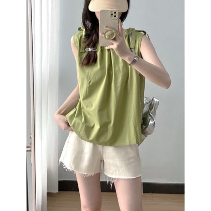Elegant French Blue Sleeveless Top Women's Summer Dopamine Wear Chic Doll Shirt 2024 New Taste