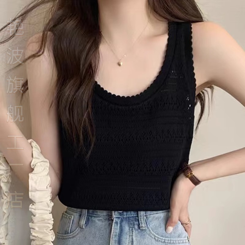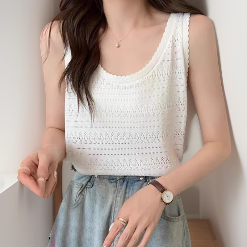 | nameOriginal | Elegant French U-neck Hollow-out Knitted White Sling Women's Thin Outer Top Summer Design Ice Taste |