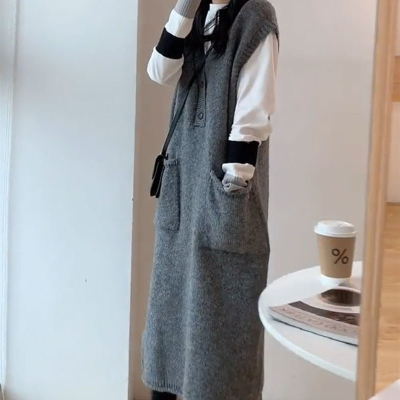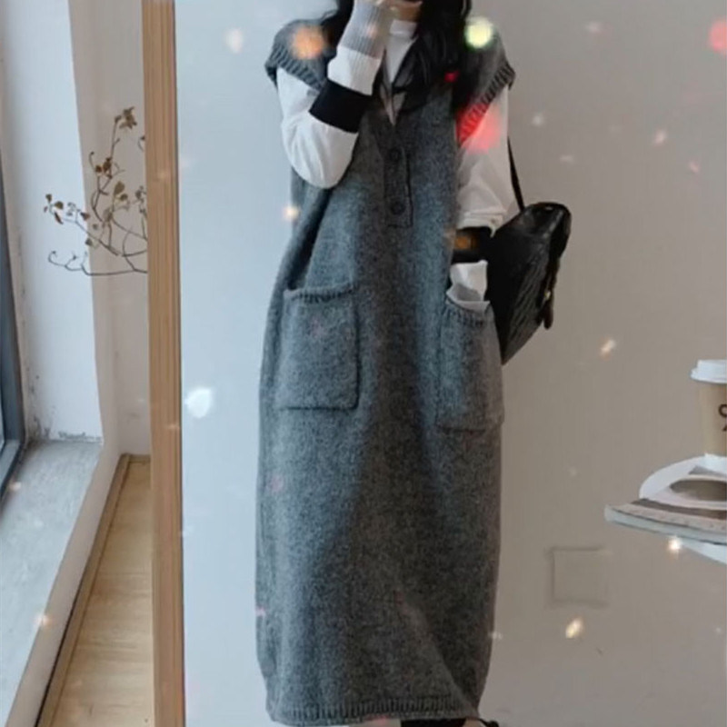 | nameOriginal | Elegant gray mid-length vest women's outer wear loose fashion waistcoat 2022autumn new European Station |