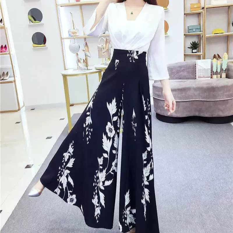 | nameOriginal | Elegant high-waist slim printed wide-leg pants with elastic bands |