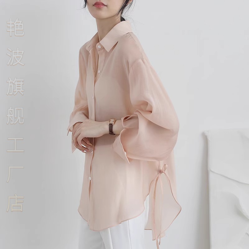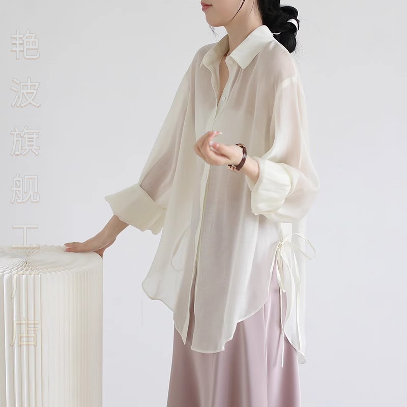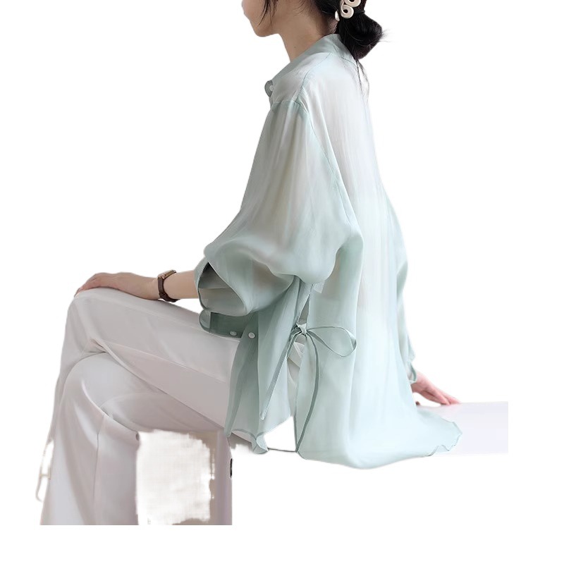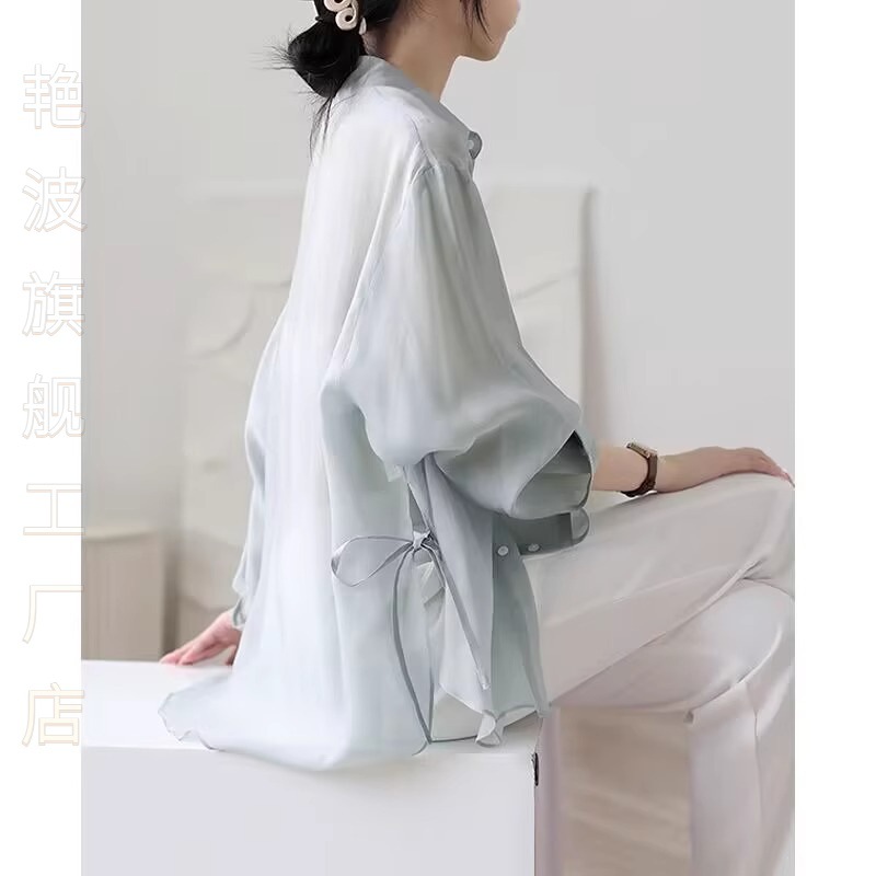 | nameOriginal | Elegant Ice Silk Chiffon Shirt Women's Summer 2024 New Style Outer Strap Cardigan Tencel Sunscreen Clothes with Taste |
