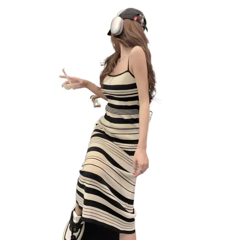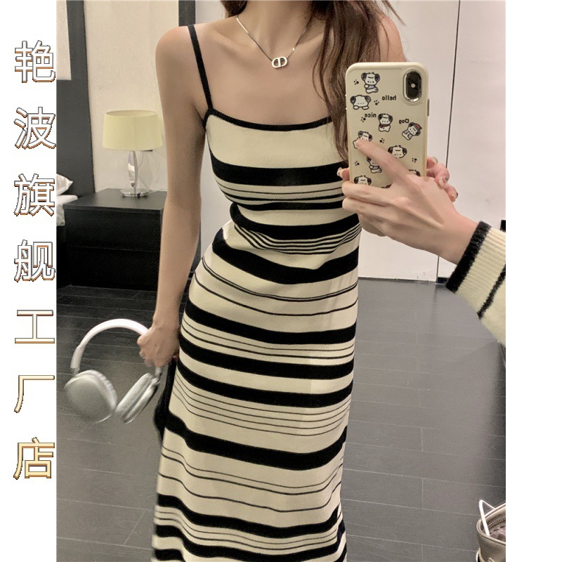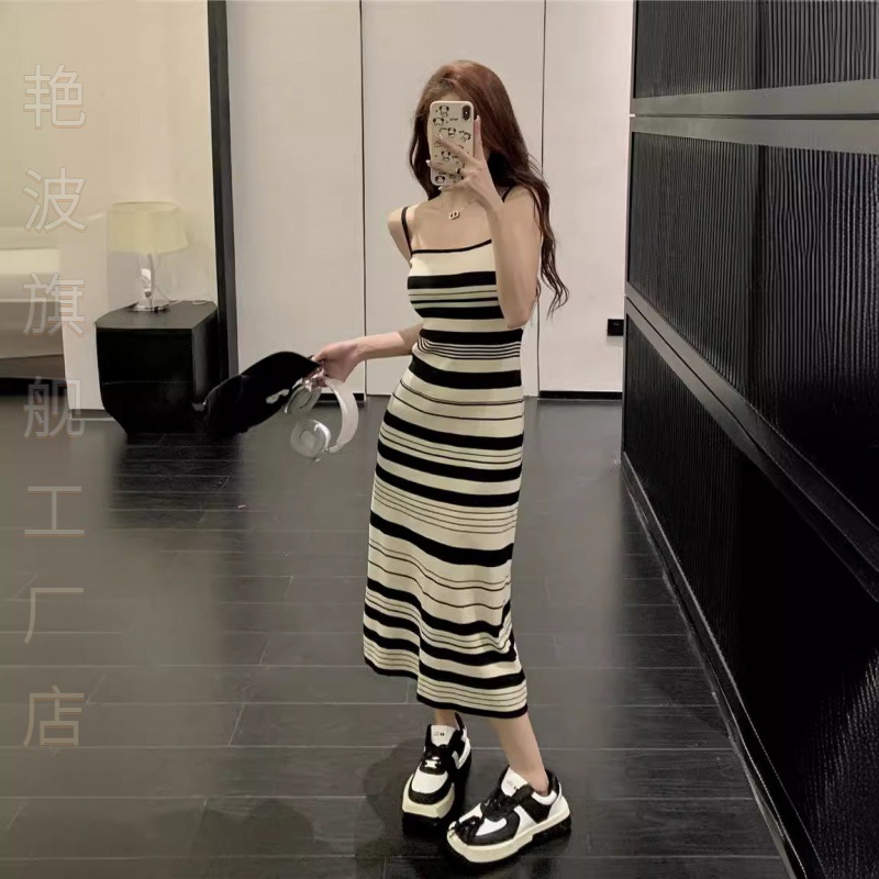 | nameOriginal | Elegant Knitted Striped Sling dress Women's 2023 Summer New Korean Style Slim Slim-Fit Taste |