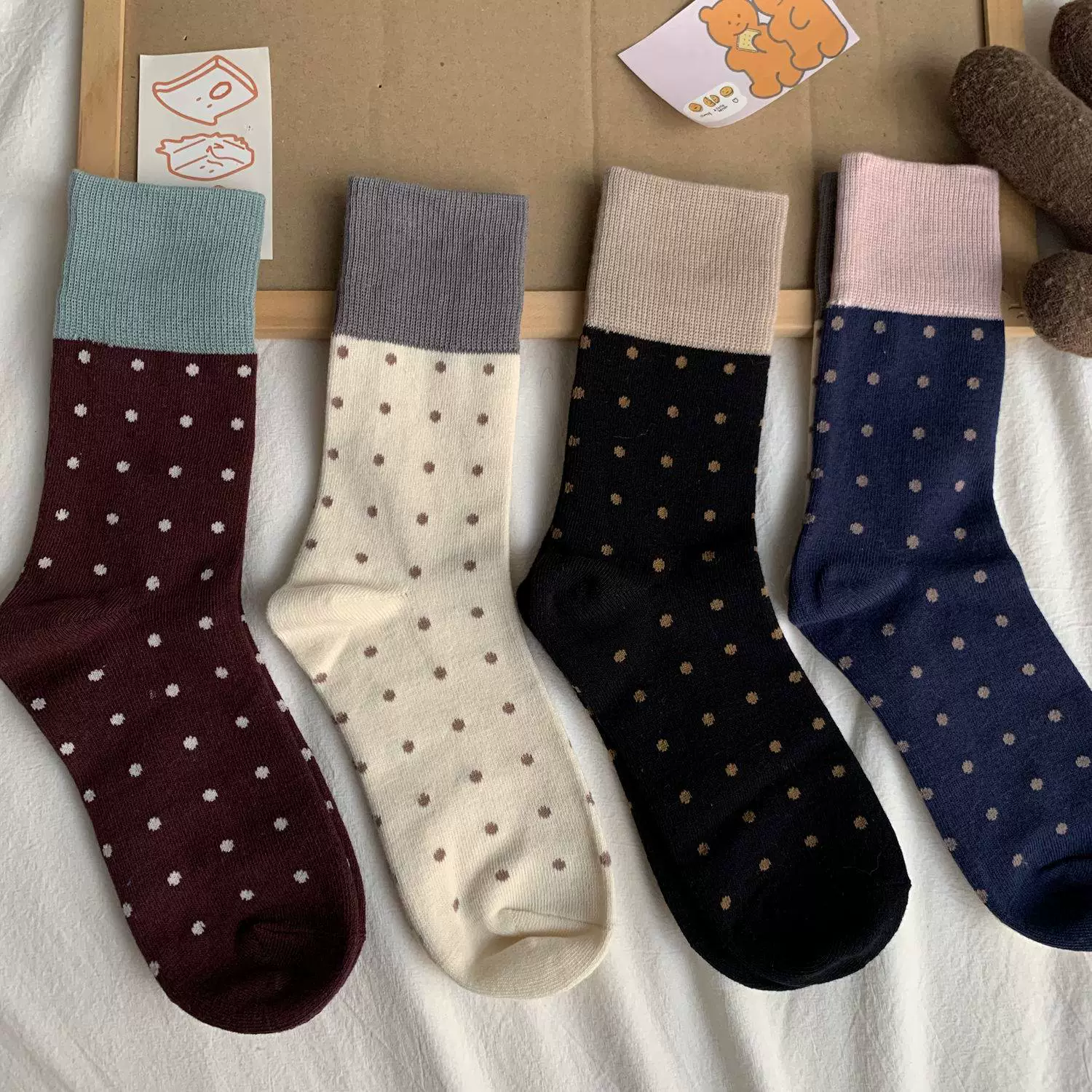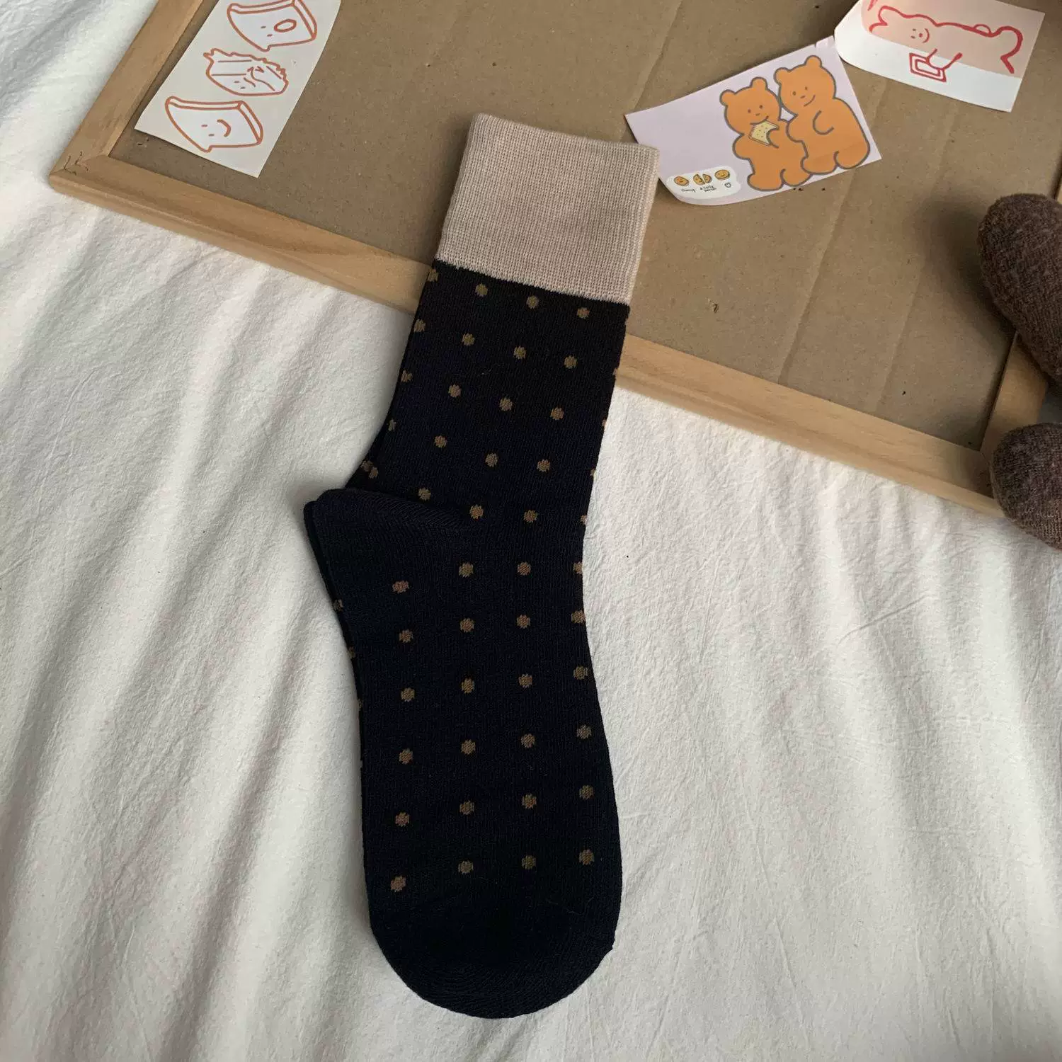 | nameOriginal | Elegant little dot mid-tube women's autumn and winter new socks personalized daily contrasting retro socks Korean forest style |