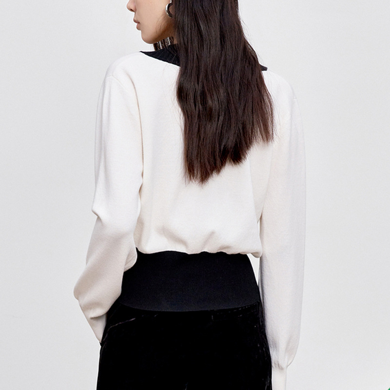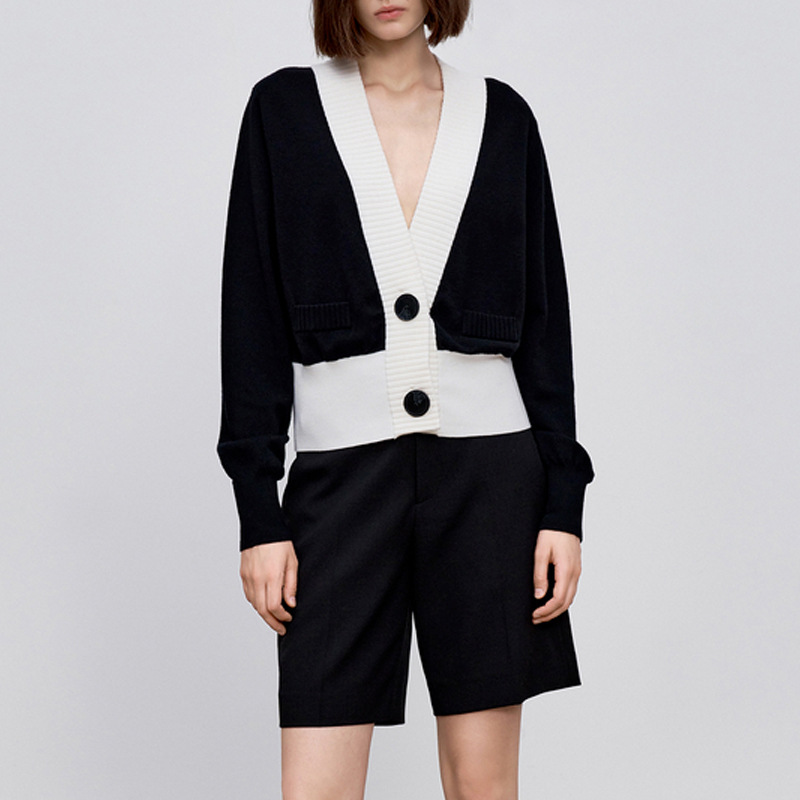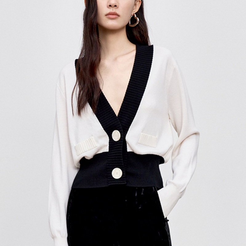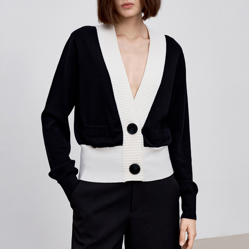 | nameOriginal | [Elegant] M * CO knitted cardigan black and white contrast color V-neck outer coat autumn and winter women's outer sweater cardigan |