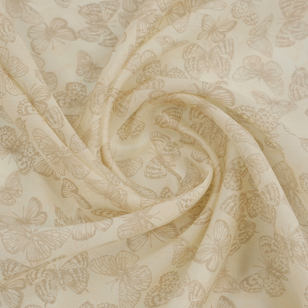| nameOriginal | Elegant national style light and thin off-white glossy dark pattern butterfly print fabric cheongsam Hanfu costume designer fabric |