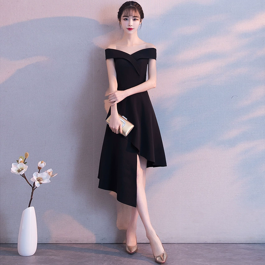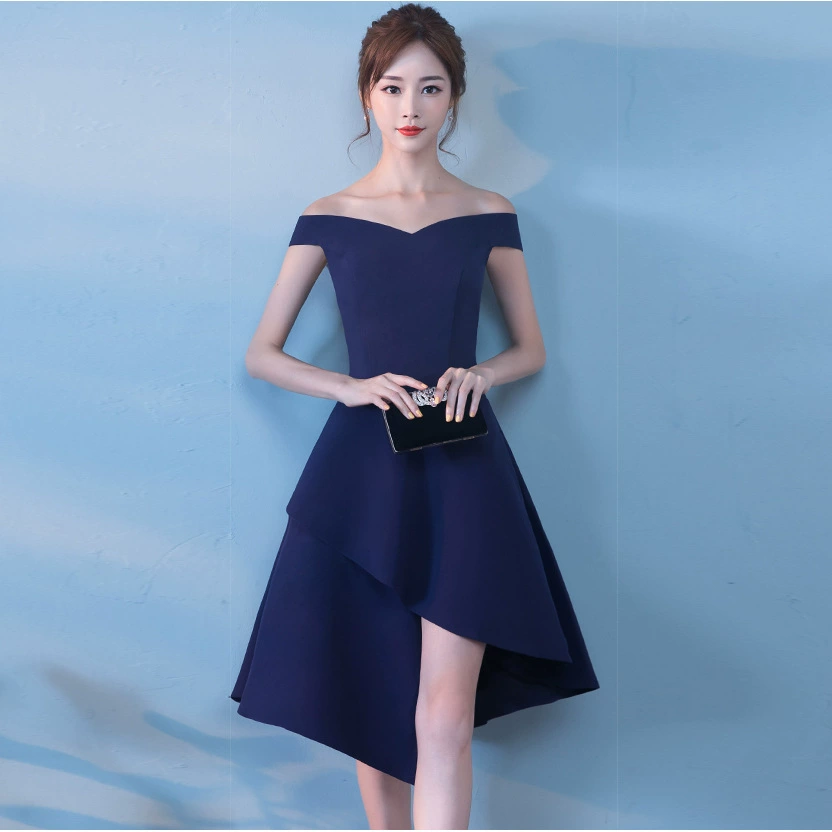 Elegant one-shoulder mid-length evening dress for parties and banquets