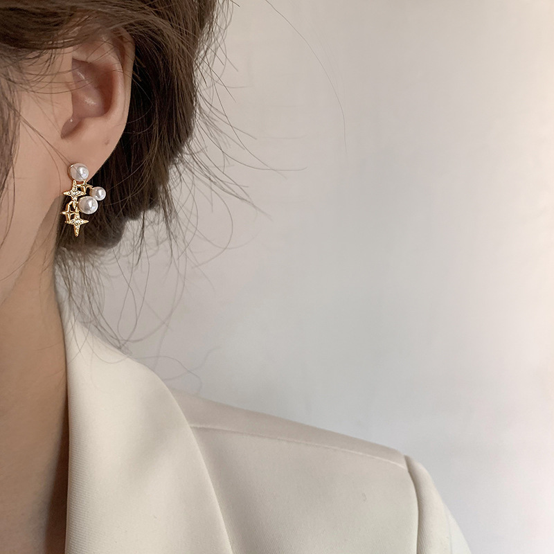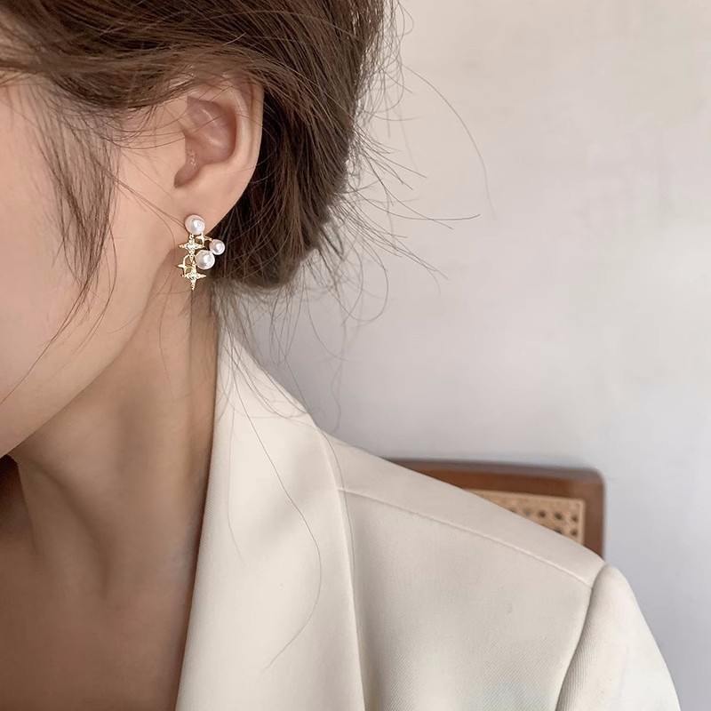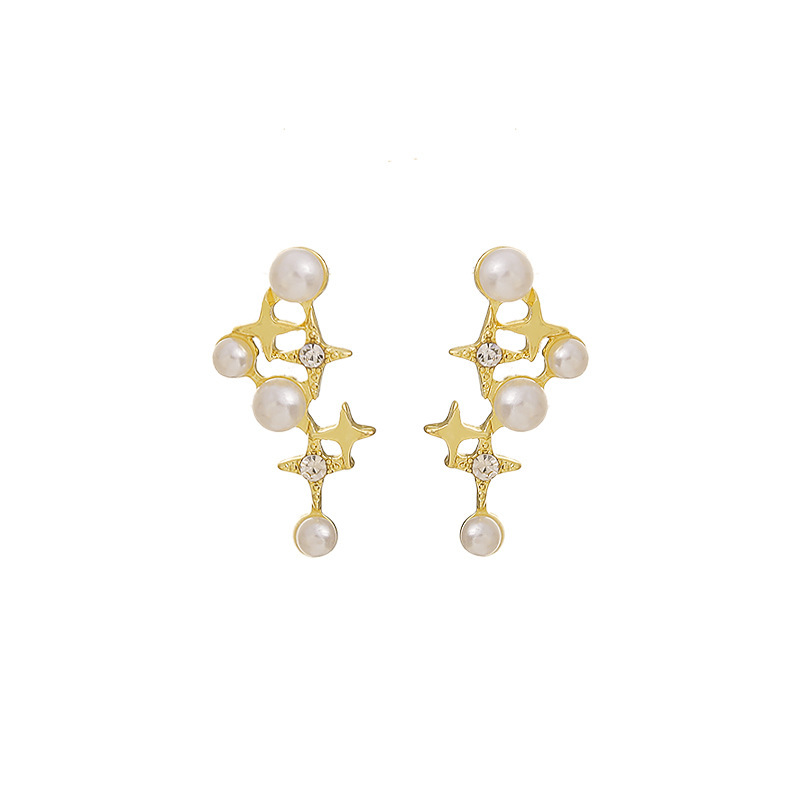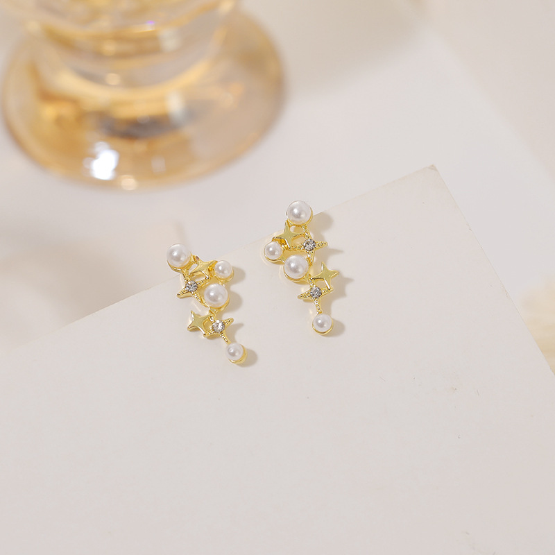 Elegant Pearl Mang Star Ear Clip Distinctive Diamond Asymmetric Earrings Sweet Japanese and Korean Niche Earrings Earrings