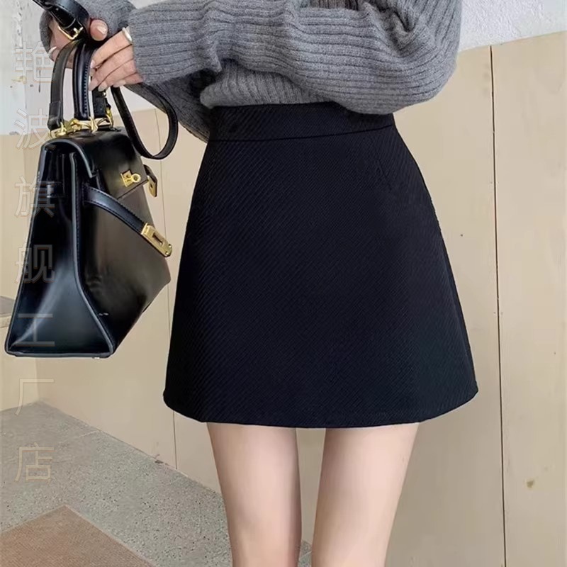| nameOriginal | Elegant plus size Black Skirt Women's Autumn and Winter Wool Short Skirt Retro High Waist Thickened Hip Skirt with Taste |
