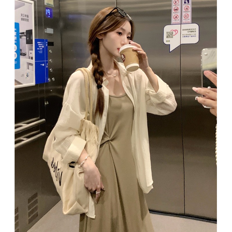 Elegant Polo Collar Gray Long-Sleeved Sunscreen Shirt Women's Summer Niche Design Sense Back Split Thin Jacket