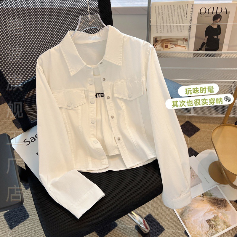 | nameOriginal | Elegant Polo Collar Long Sleeve Shirt Coat Women's Autumn 2024 New Letter Vest Short Top with Taste |