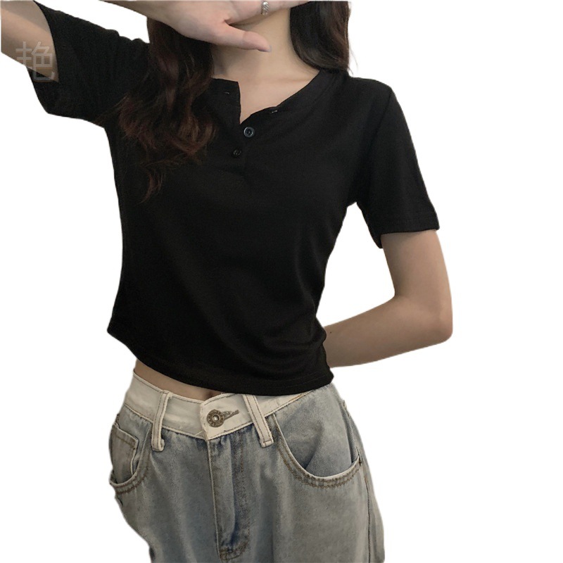 | nameOriginal | Elegant Pure Desire Style Half-open Collar Button Short-sleeved T-shirt Women's Small 2024 Summer New Korean Style Repair Taste |