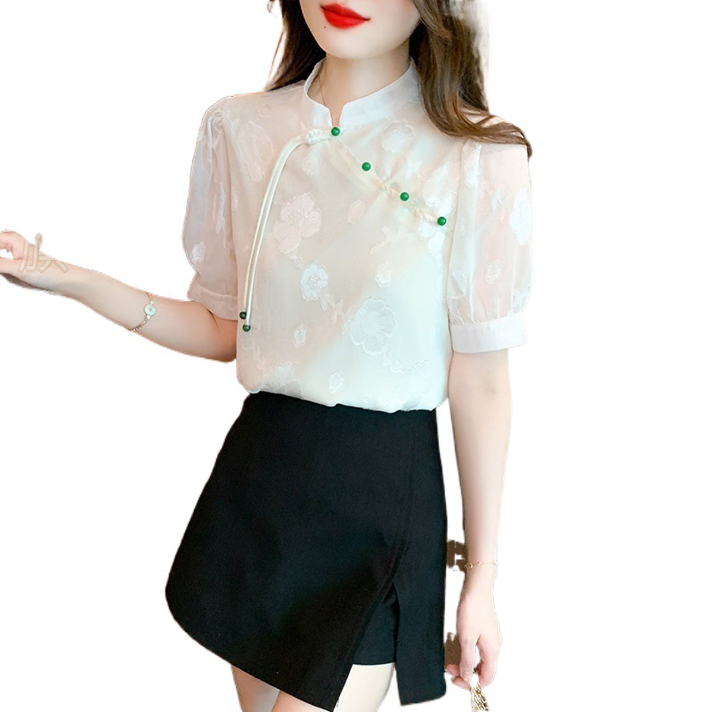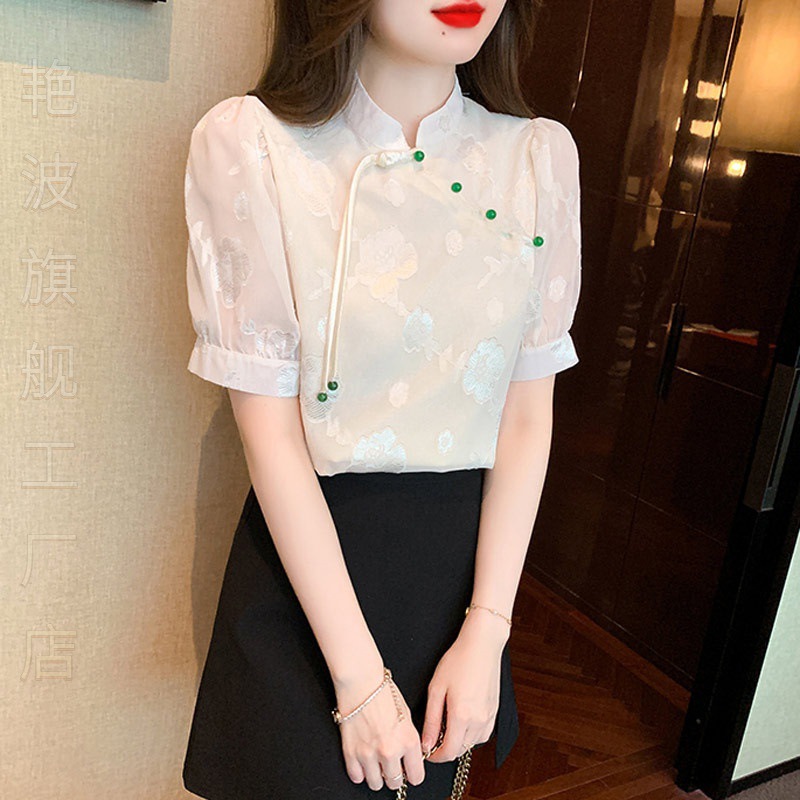 | nameOriginal | Elegant Retro Collar Elegant Top Women's Summer 2024 New Summer Shirt Chiffon Shirt Women's Taste |