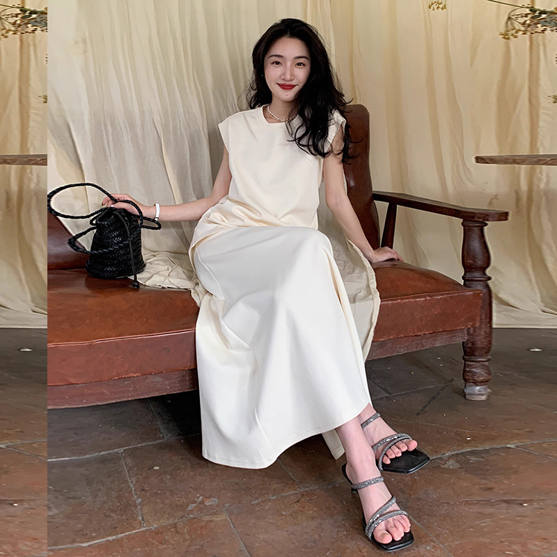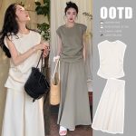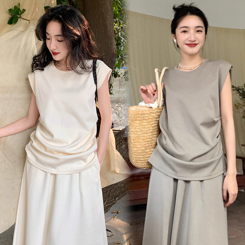 | nameOriginal | Elegant Round Neck Sleeveless Pleated Casual Belly Covering Top A- line Large Swing Abdomen-free Skirt |
