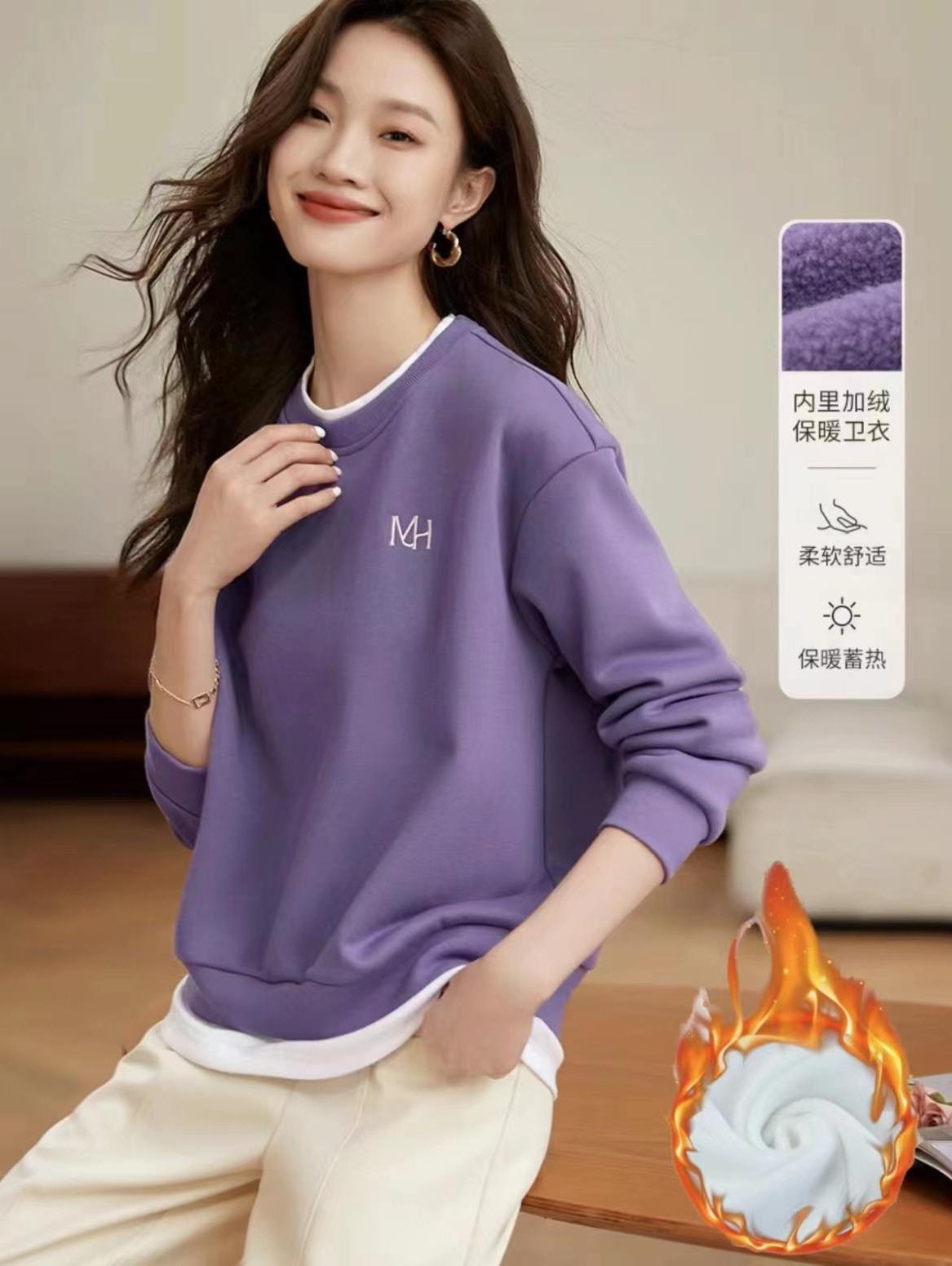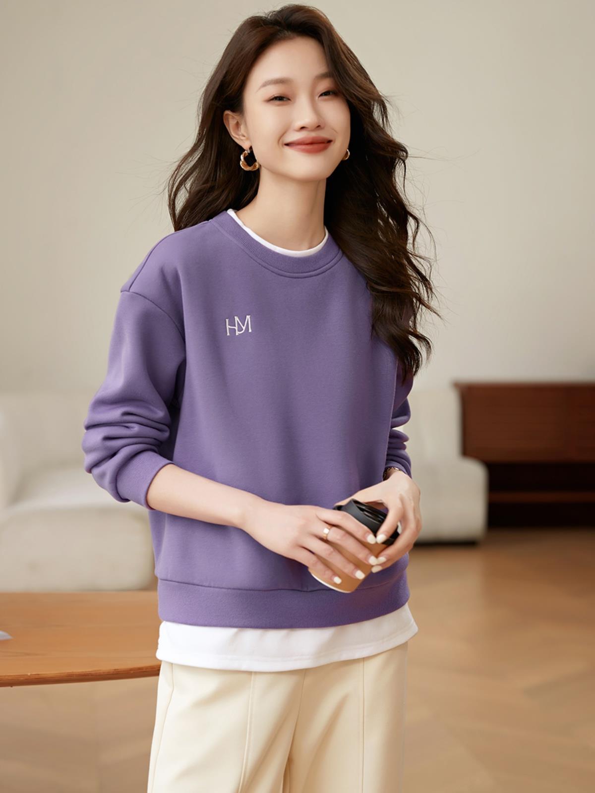 | nameOriginal | Elegant round neck versatile stitching fleece-lined warm sweater 2023 autumn and winter New Fashion casual style fake two-piece top |