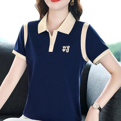 | nameOriginal | Elegant Short-sleeved T-shirt Women's Summer 2024 New Age-reducing Middle-aged Casual Polo Shirt Loose All-match Top Lapel |
