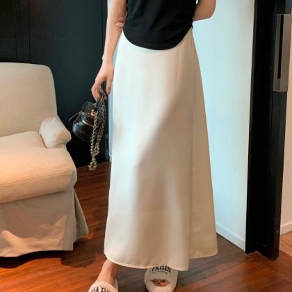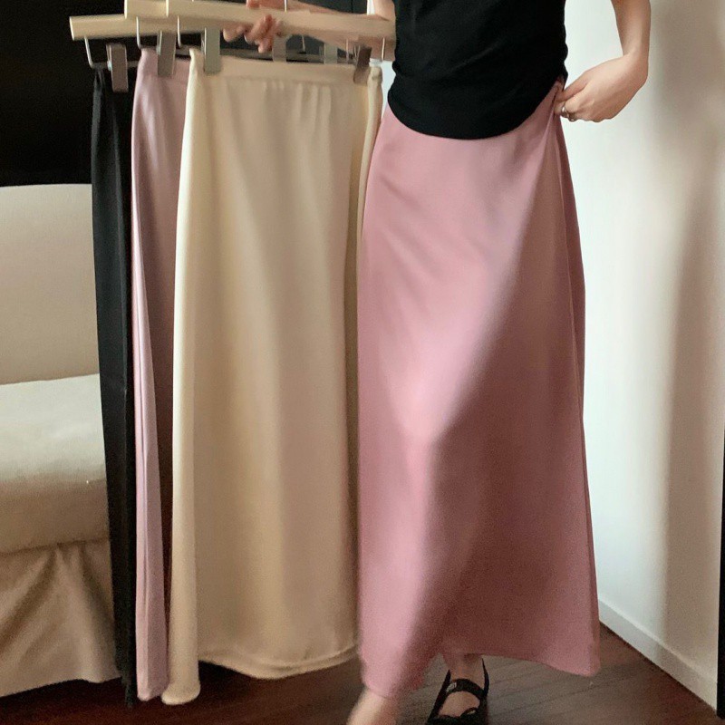 | nameOriginal | Elegant Silky Satin Dape Midi 2024 Skirt Spring and Summer New High Waist Slimming Long Skirt Skirt for Women |