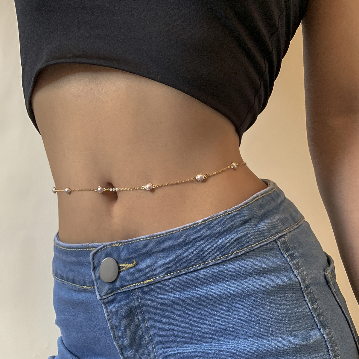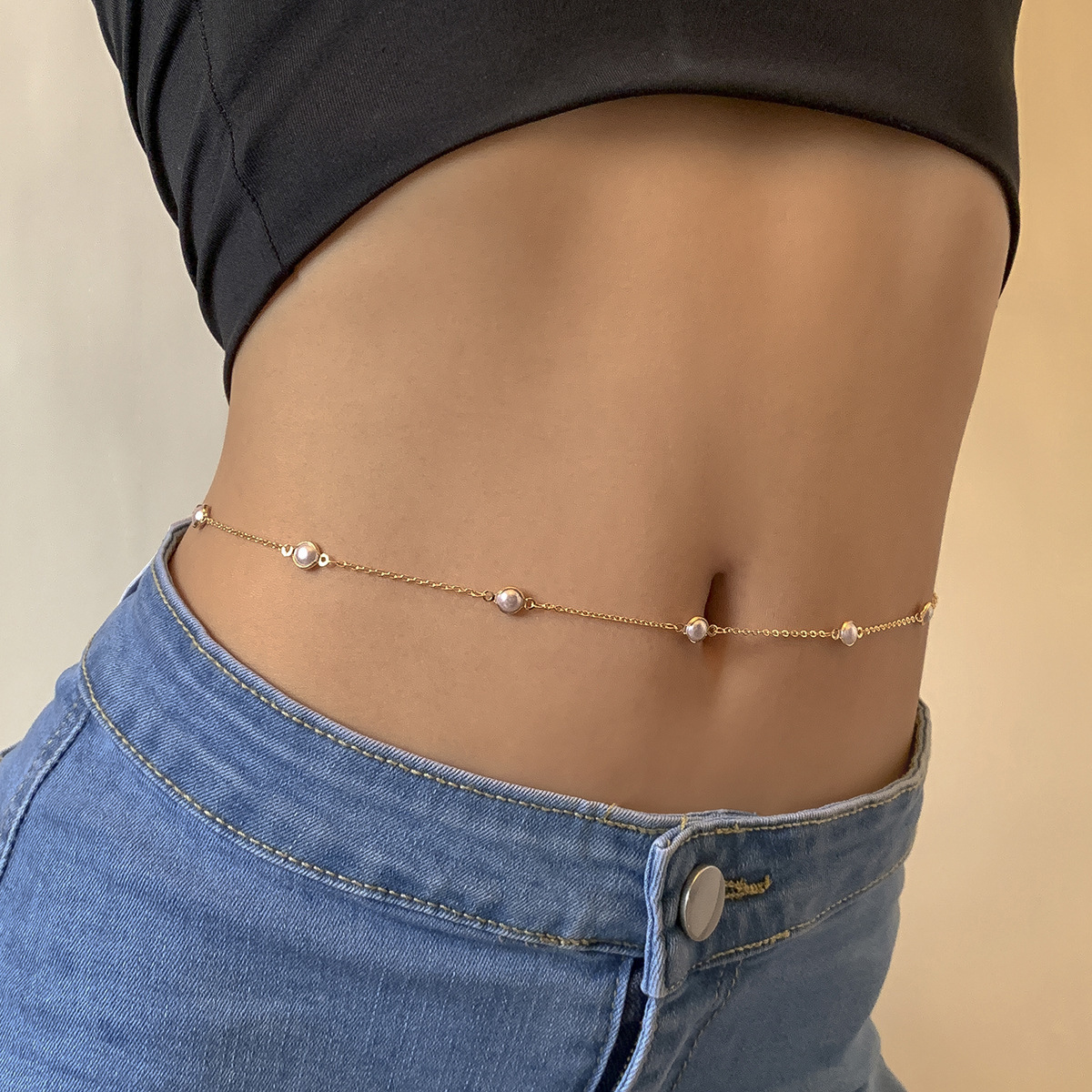 Elegant Simple Cold Style Imitation Pearl Chain Waist Chain Women's European and American Cross-border Sweet Cool ins Style Sexy Body Chain Women