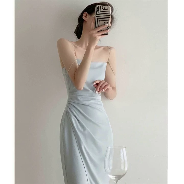 | nameOriginal | Elegant socialite chic stunning collarbone suspender dress |