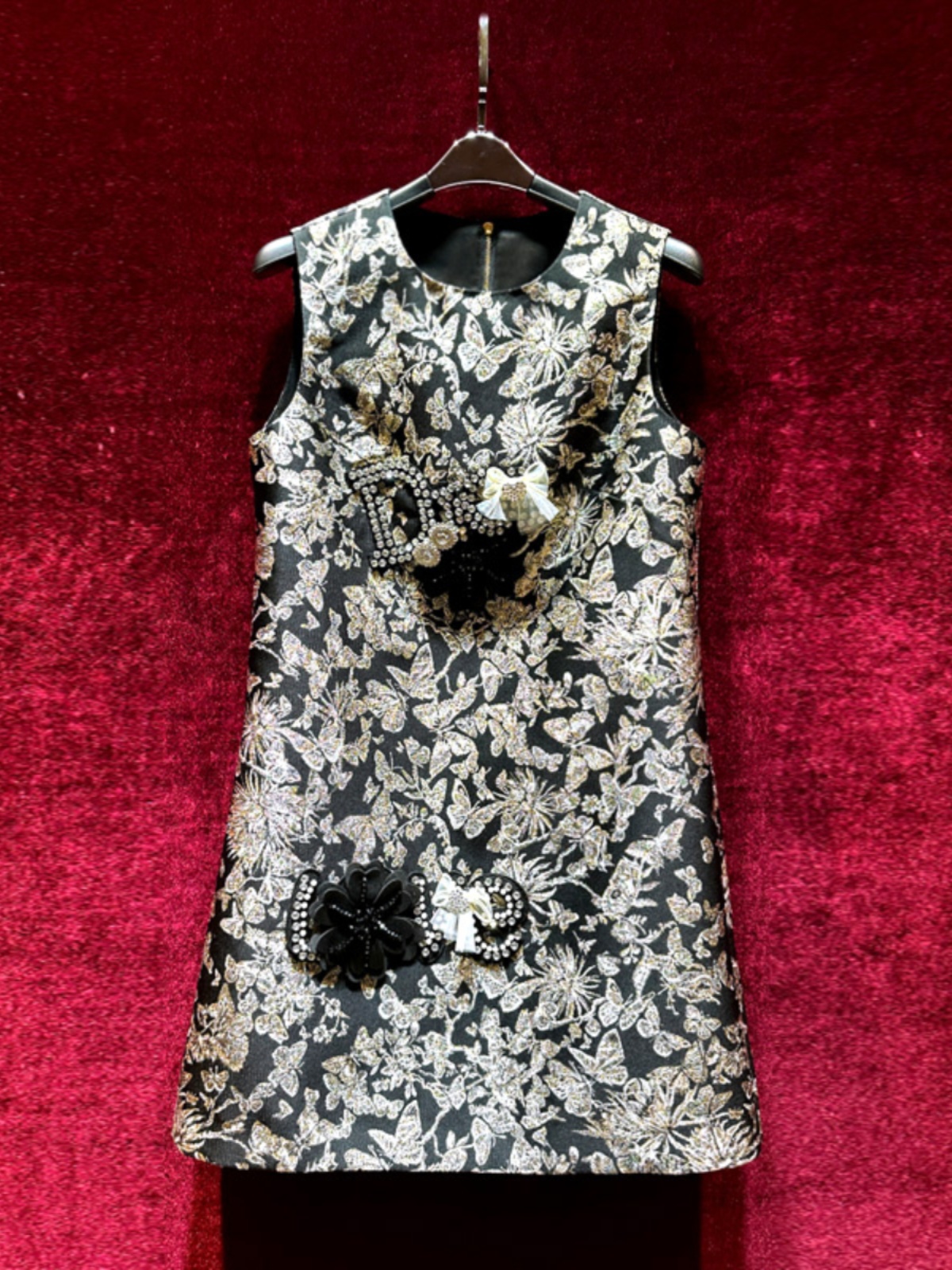 | nameOriginal | Elegant socialite heavy industry niche round neck sleeveless A-line skirt |