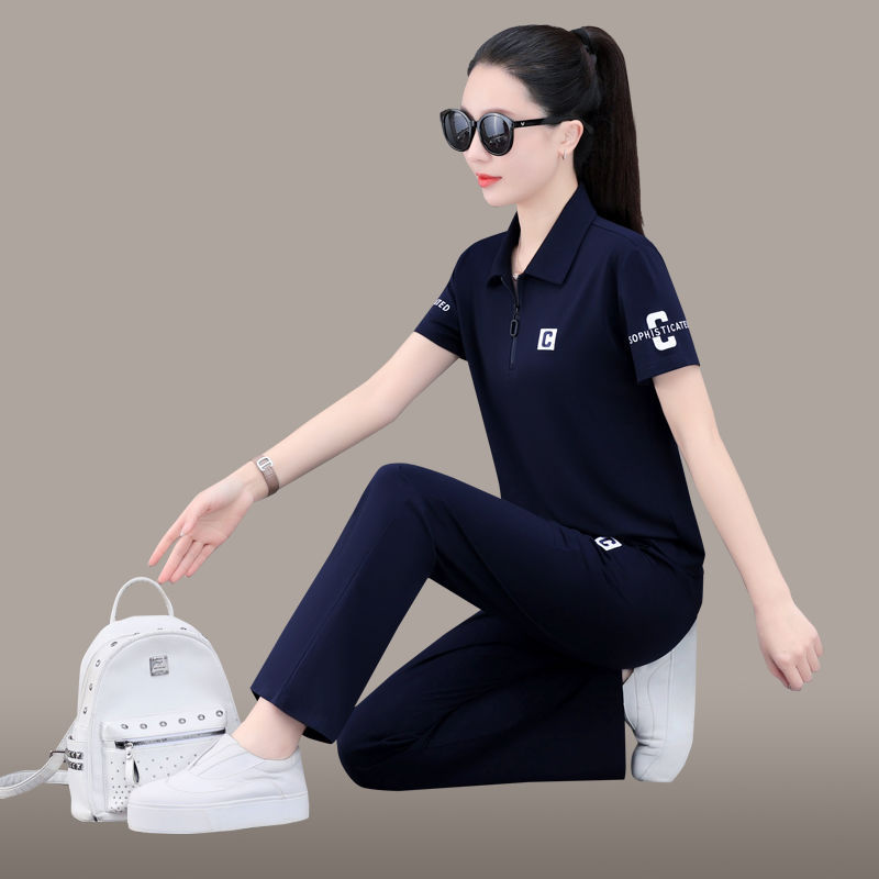 | nameOriginal | Elegant sportswear suit women's summer fashionable age-reducing 2023 new slim-fit meat-covering casual clothes short sleeve two-piece suit |