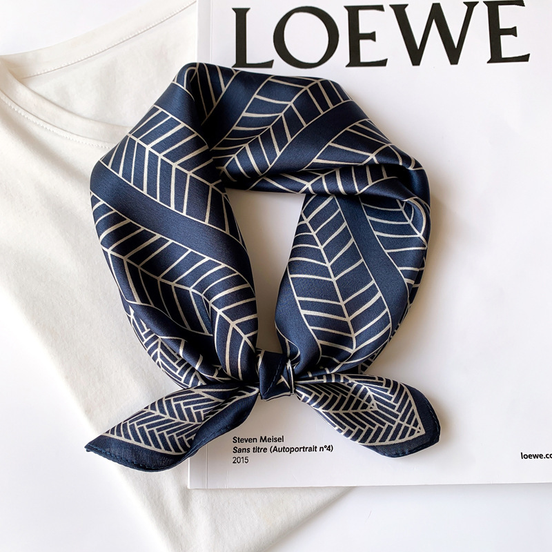 Elegant Spring New Silk Scarf Crepe Satin 53cm Small Square Scarf Exquisite Geometric Decorative Scarf Women