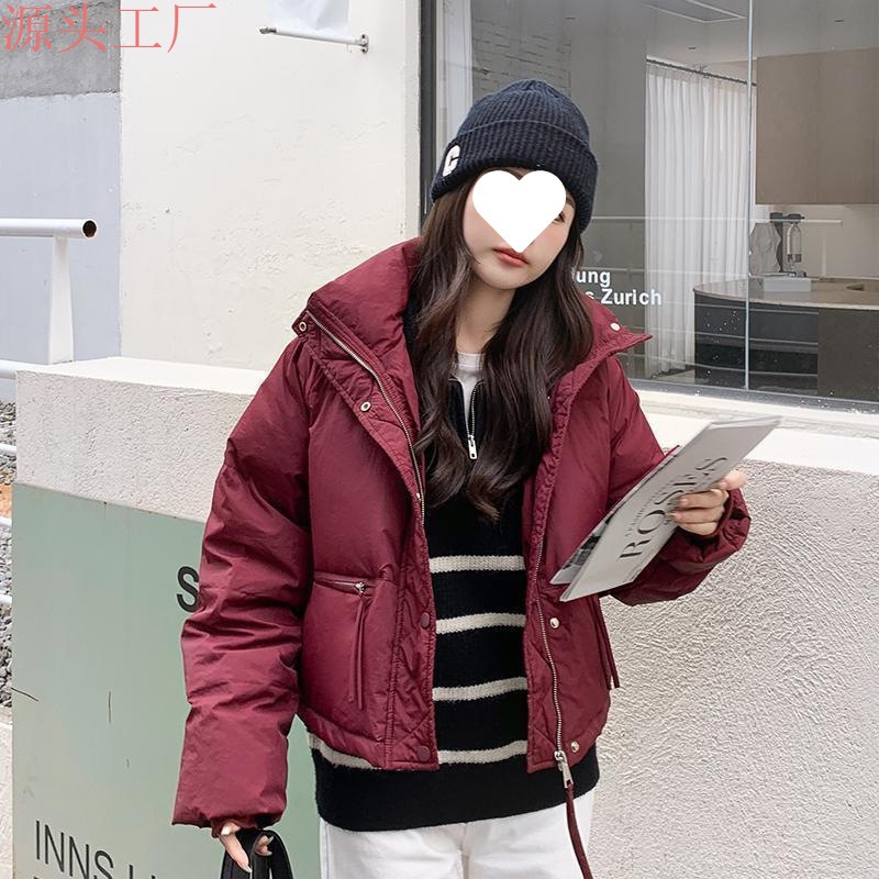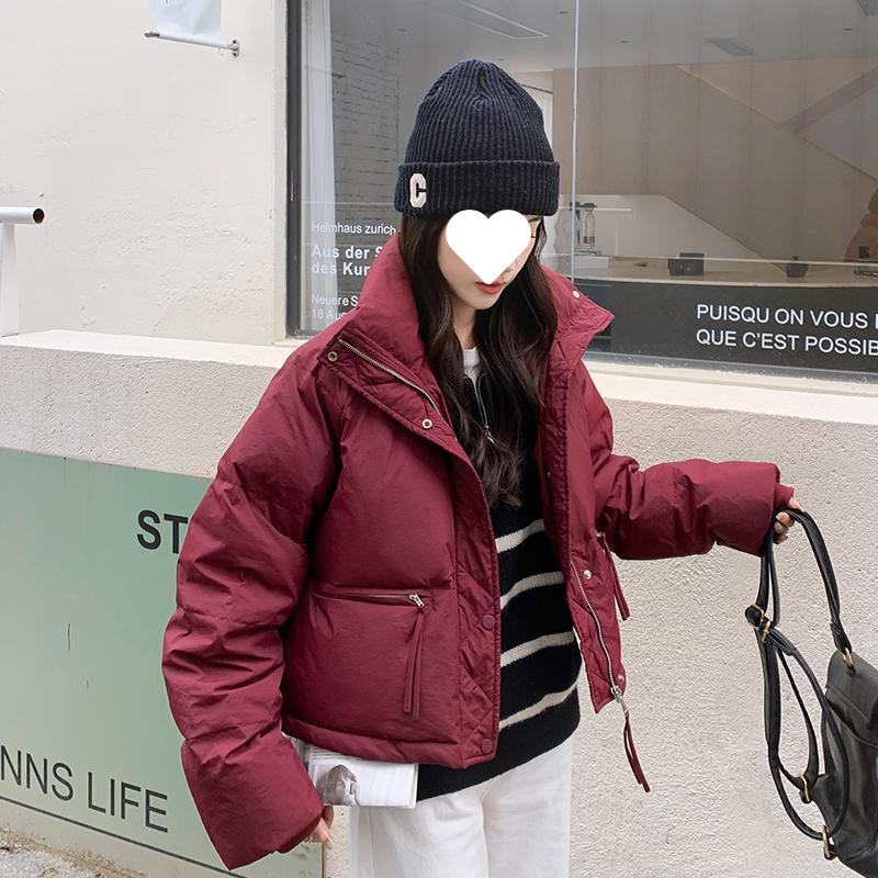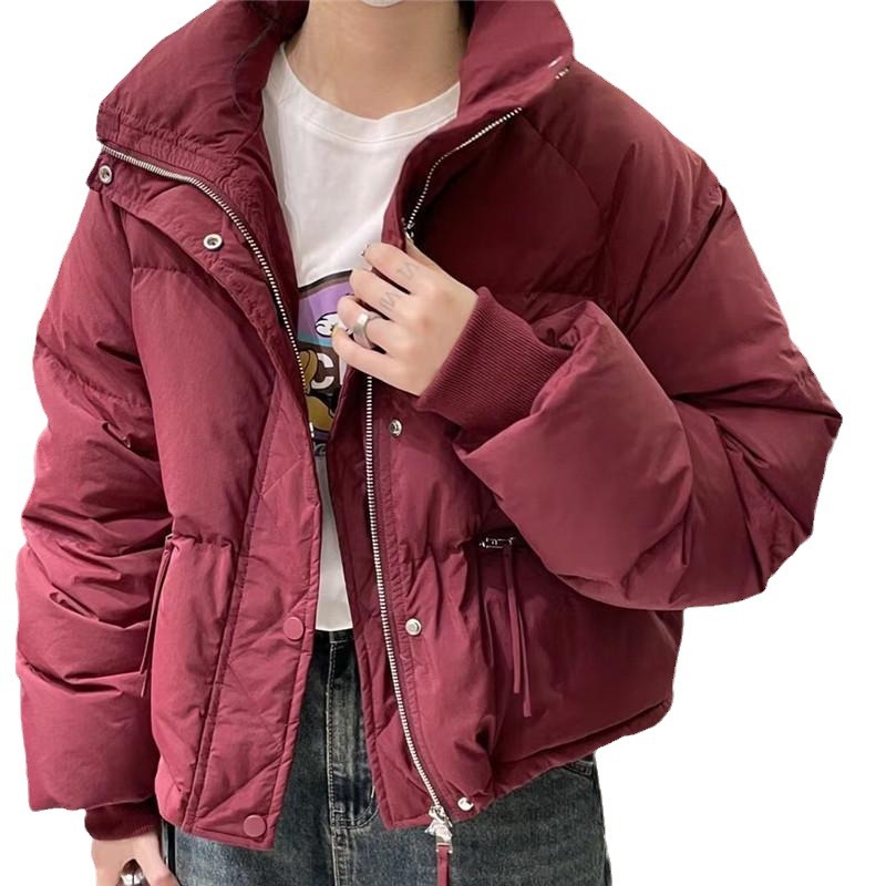 | nameOriginal | Elegant stand collar waist-tight thickened Western style winter New down cotton-padded coat women's short bread coat wine red small |