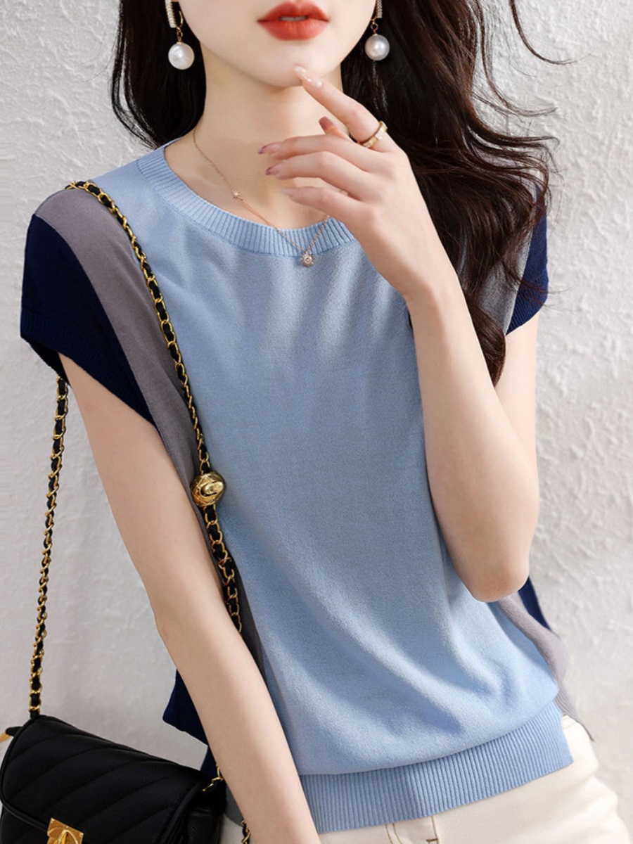 | nameOriginal | Elegant stitching contrasting color design niche ice silk top |