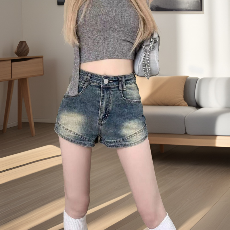 | nameOriginal | Elegant Summer New Spice Girls Denim Shorts Women's American-style High Waist Elastic Old Retro All-match Straight Taste |